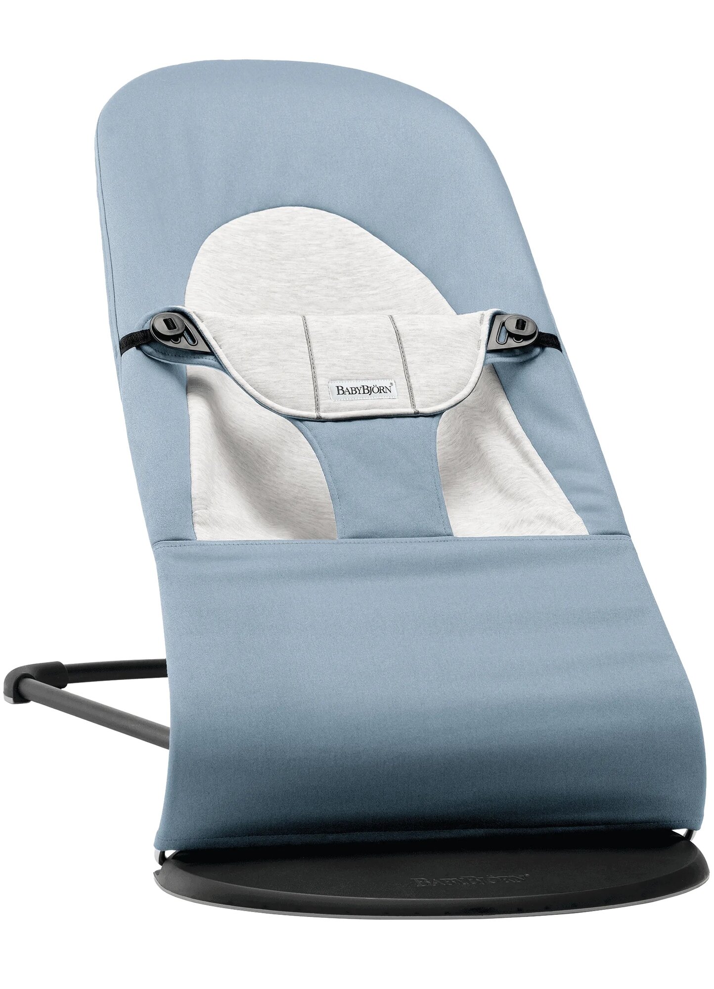 BabybjornWipstoeltje Balance soft zwart frame Cotton Jersey Blauw Grijs