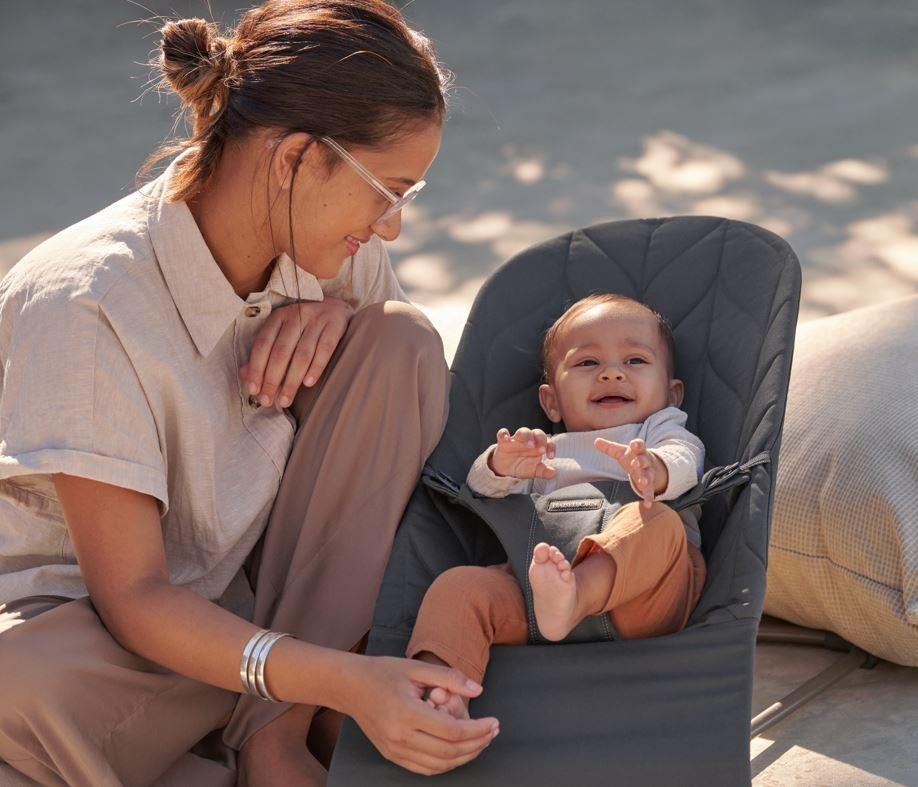 BabybjornWipstoeltje Bliss donkergrijs frame Cotton kroonblad quilt Antraciet