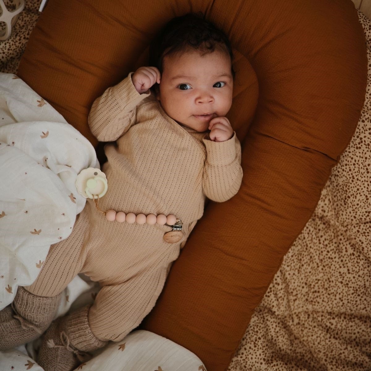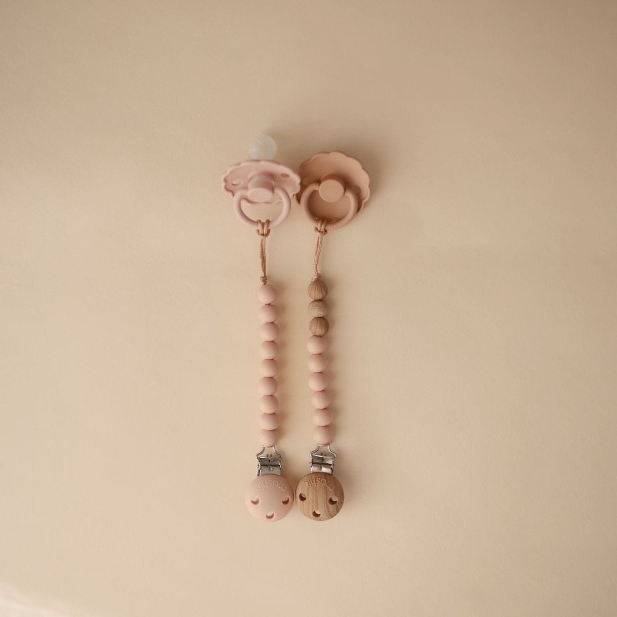 De Mushie fopspeenketting HALO is een stijlvolle en functionele oplossing om de fopspeen van je kleintje binnen handbereik te houden. Gemaakt van veilig, BPA-vrij materiaal, voorkomt deze ketting dat de fopspeen op de grond valt. Het moderne ontwerp en de trendy kleuren maken het een mooie toevoeging aan de babyuitzet. Gemakkelijk te bevestigen en schoon te maken – perfect voor dagelijks gebruik!