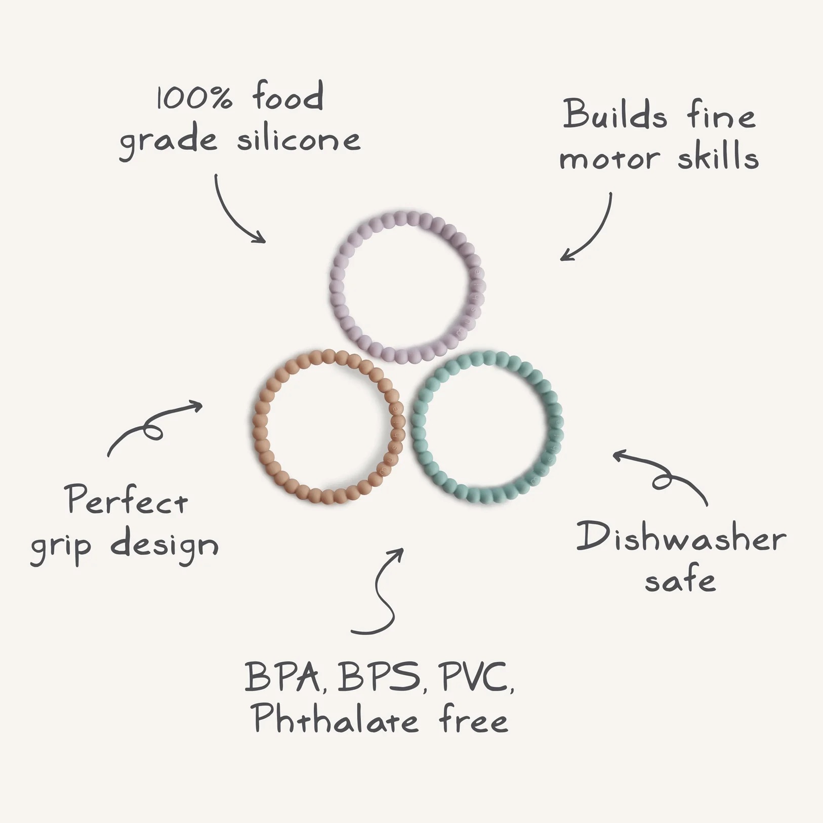 De Mushie silicone armband is een trendy accessoire dat stijl en functionaliteit combineert. Gemaakt van duurzaam, BPA-vrij siliconen, is deze armband veilig voor dagelijks gebruik en perfect voor kleintjes die graag spelen met accessoires. Lichtgewicht en comfortabel om te dragen, het maakt elke outfit compleet. Ideaal voor zowel kinderen als volwassenen die van moderne, minimalistische designs houden.