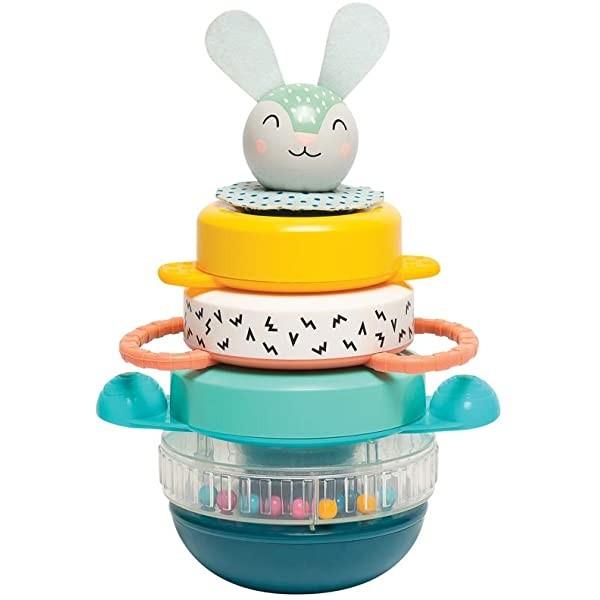 Kleurrijk stapelspel met een vriendelijk konijnfiguurtje uit de North Pole collectie van Taf Toys.