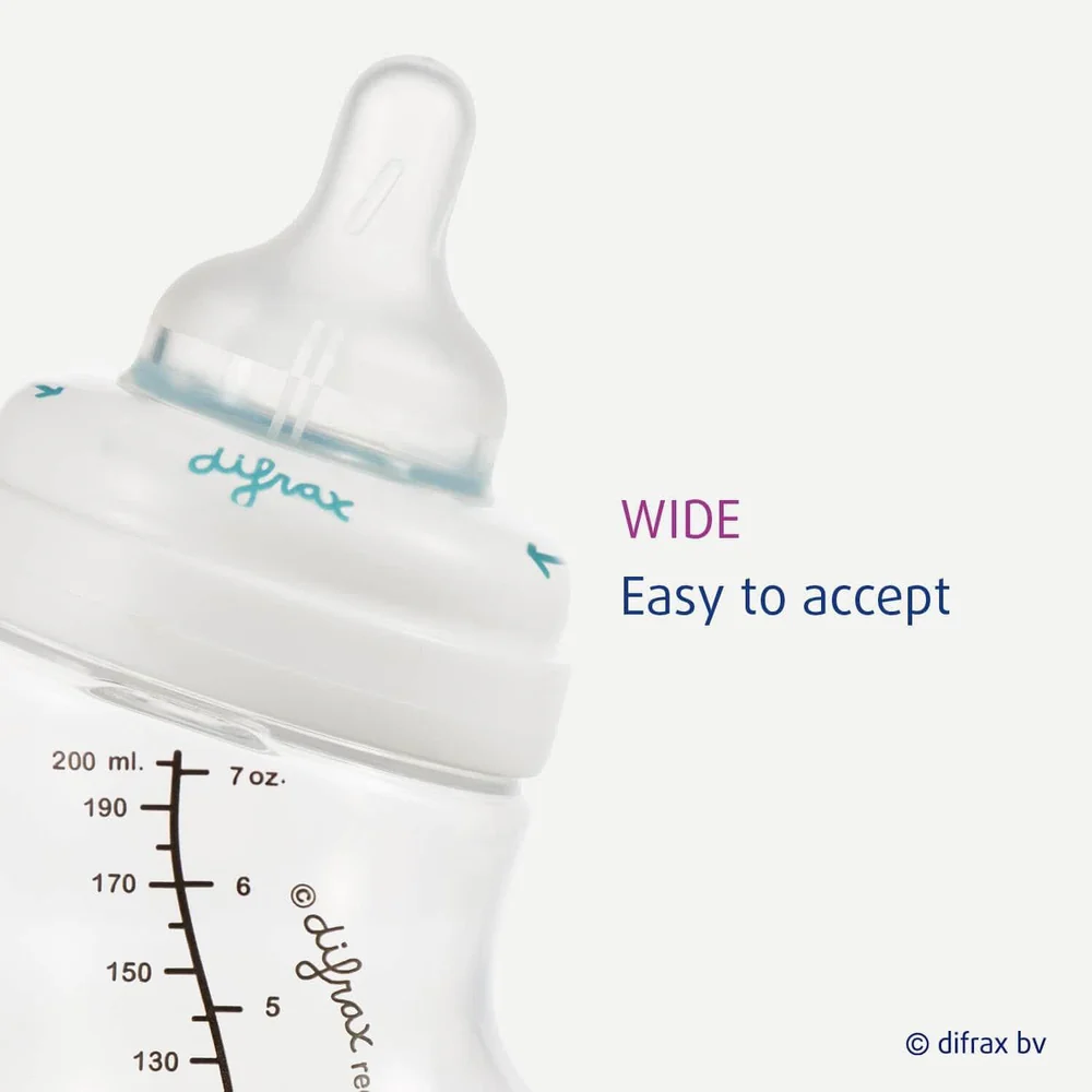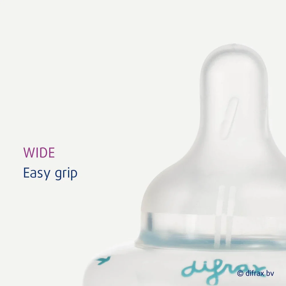 Difrax 1-2-3 Doseerspeen Wide maakt het eenvoudig om de juiste stroomsnelheid te kiezen. Dankzij de verstelbare standen is de speen geschikt voor zowel dunne als dikke voeding, van melk tot pap. De zachte, tepelvormige speen met extra soft-grip coating voelt natuurlijk aan en is ideaal voor baby's vanaf 3 maanden. Geschikt voor Difrax Wide babyflessen van 200 en 310 ml.