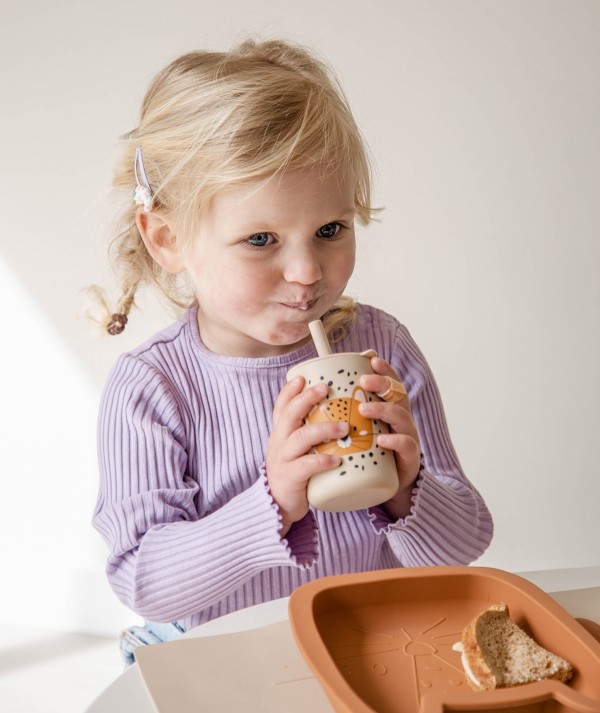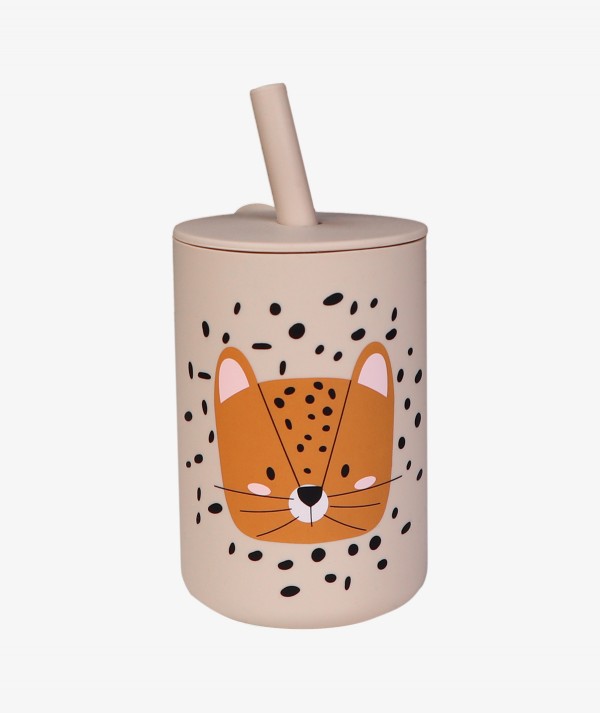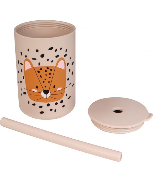 TrycoSilicone drinkbeker met rietje Leopard Sand