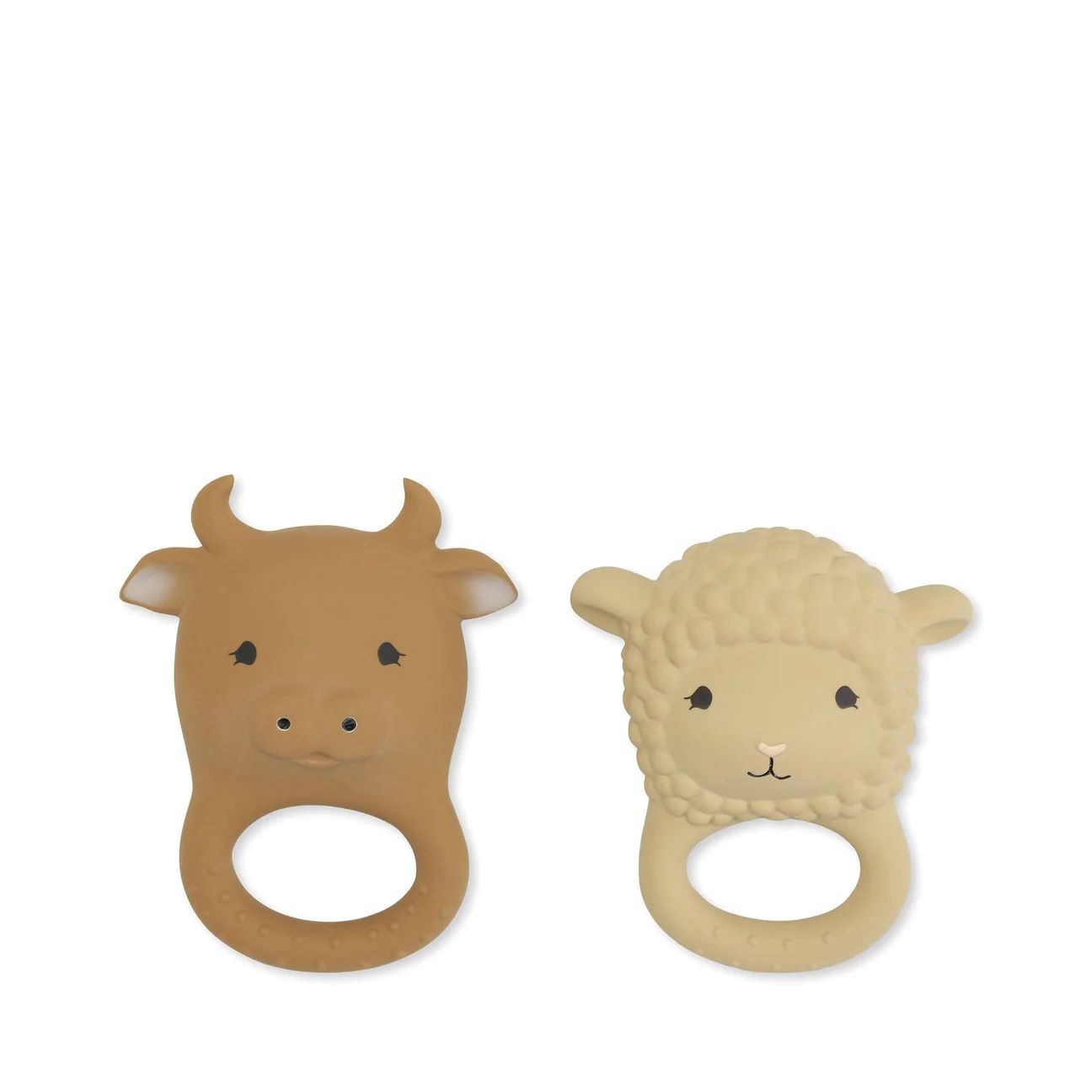 Konges SløjdSet van 2 bijtringen boerderij - sheep/cow