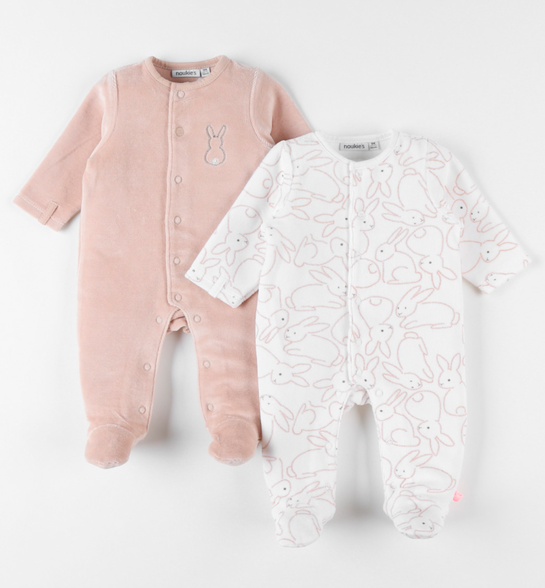 NoukiesSet van 2 Pyjama's beige met Konijntjes Beige