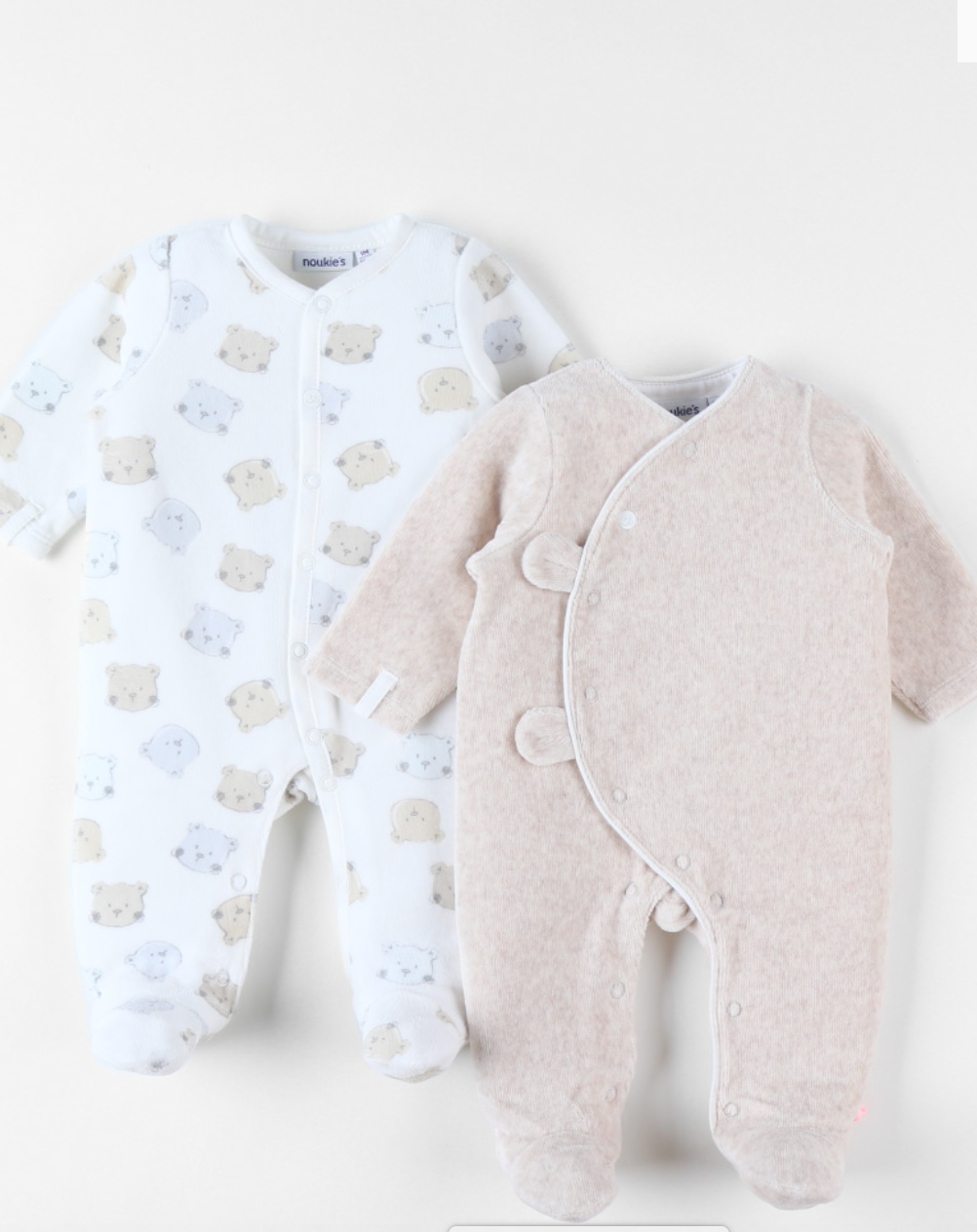 NoukiesSet van 3 Pyjama's beige met beertjes Beige