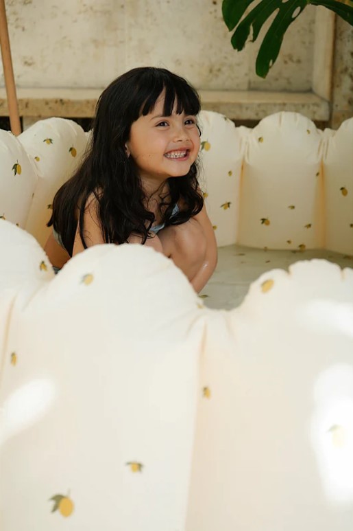 Zalige zomerdagen wordt nog nét iets zoeter in dit stijlvol rond zwembad voor kleine waterratjes. Het opblaasbaar zwembad zorgt voor verkoeling tijdens de zomer en staat mooi op je terras of tuin dankzij de gesculpte rand en speelse lemon print.