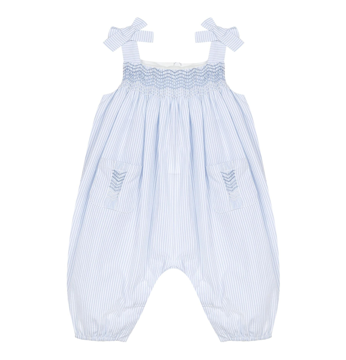 Tartine et ChocolatJumpsuit lichtblauw gestreept met strikjes lichtblauw