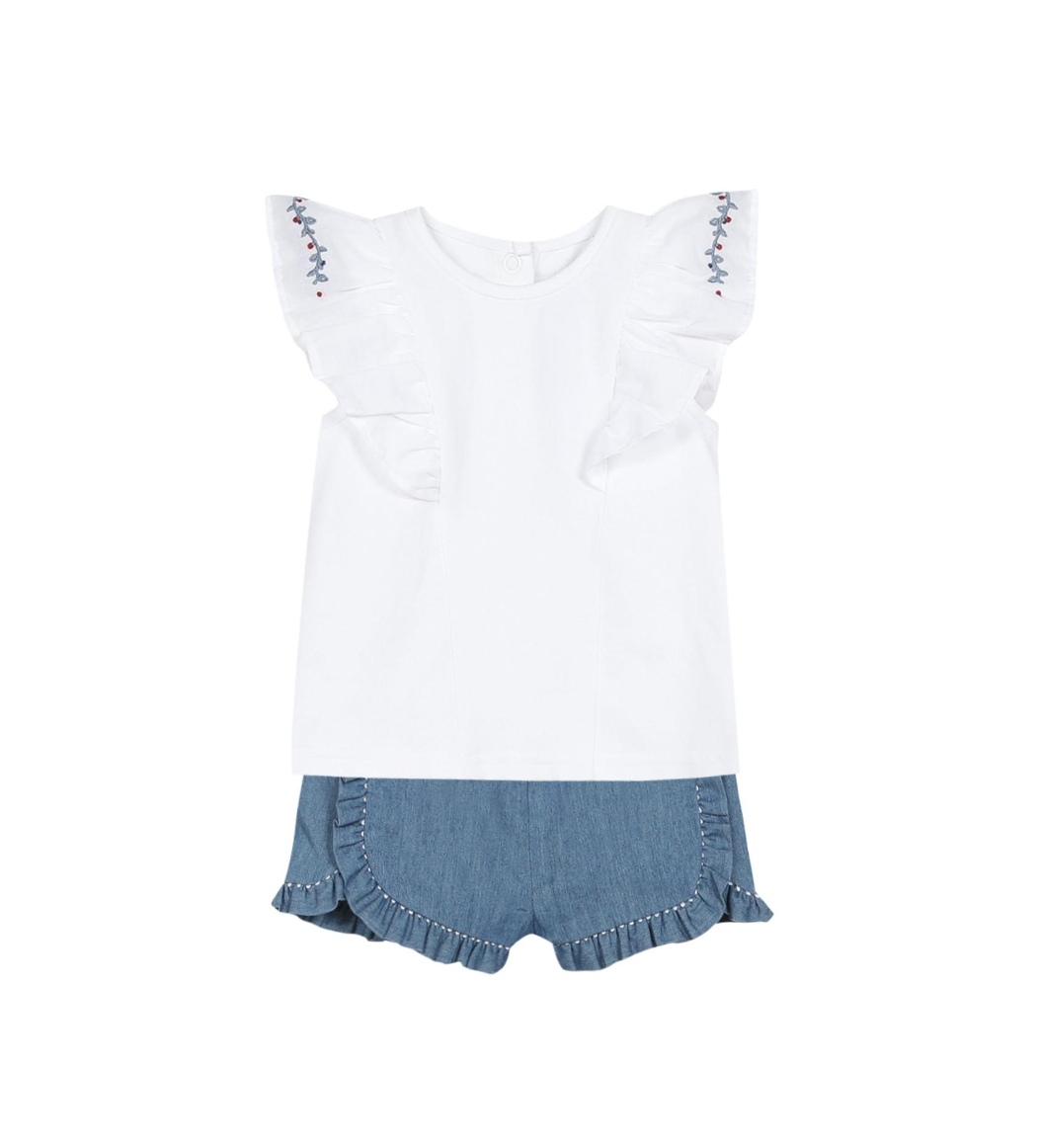 Tartine et ChocolatBlouse wit + Shortje jeans blauw Wit