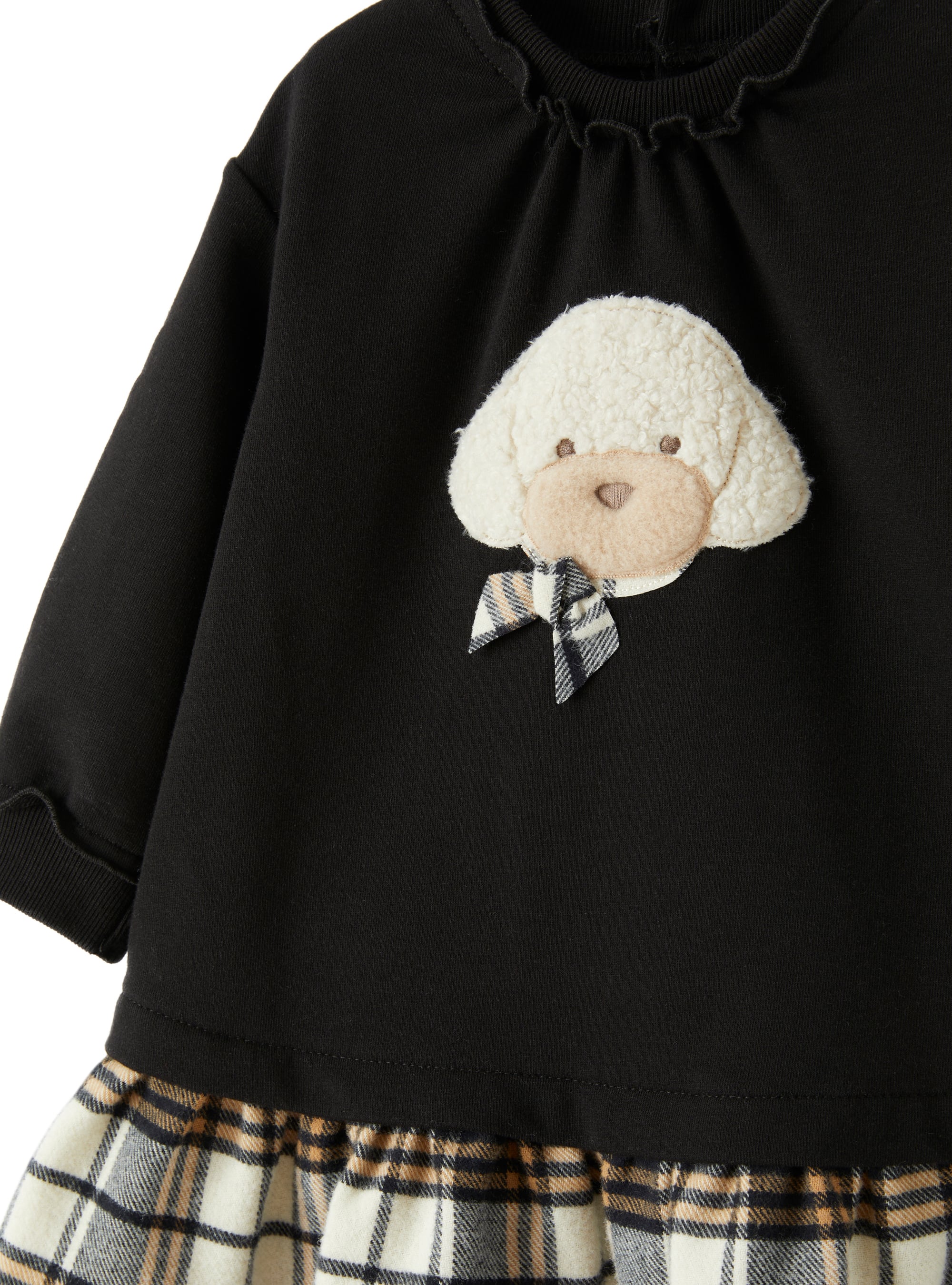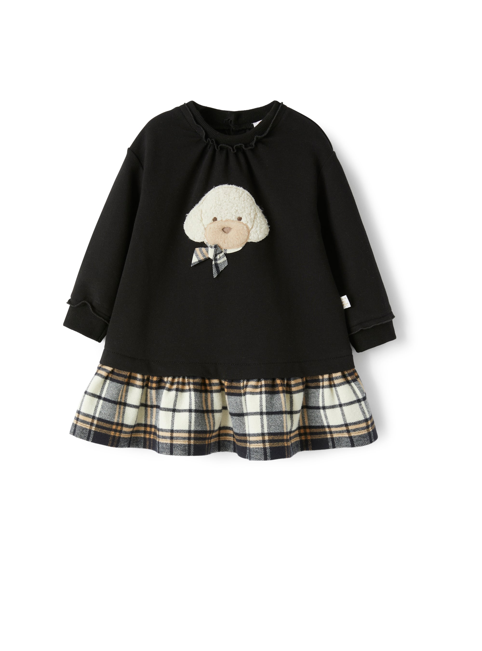Il GufoJurkje sweater stof met hond in teddy Zwart