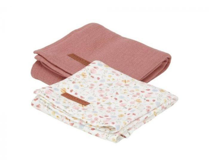 Little DutchSwaddle doeken 70x70 Flowers & Butterflies / Pure Soft Pink