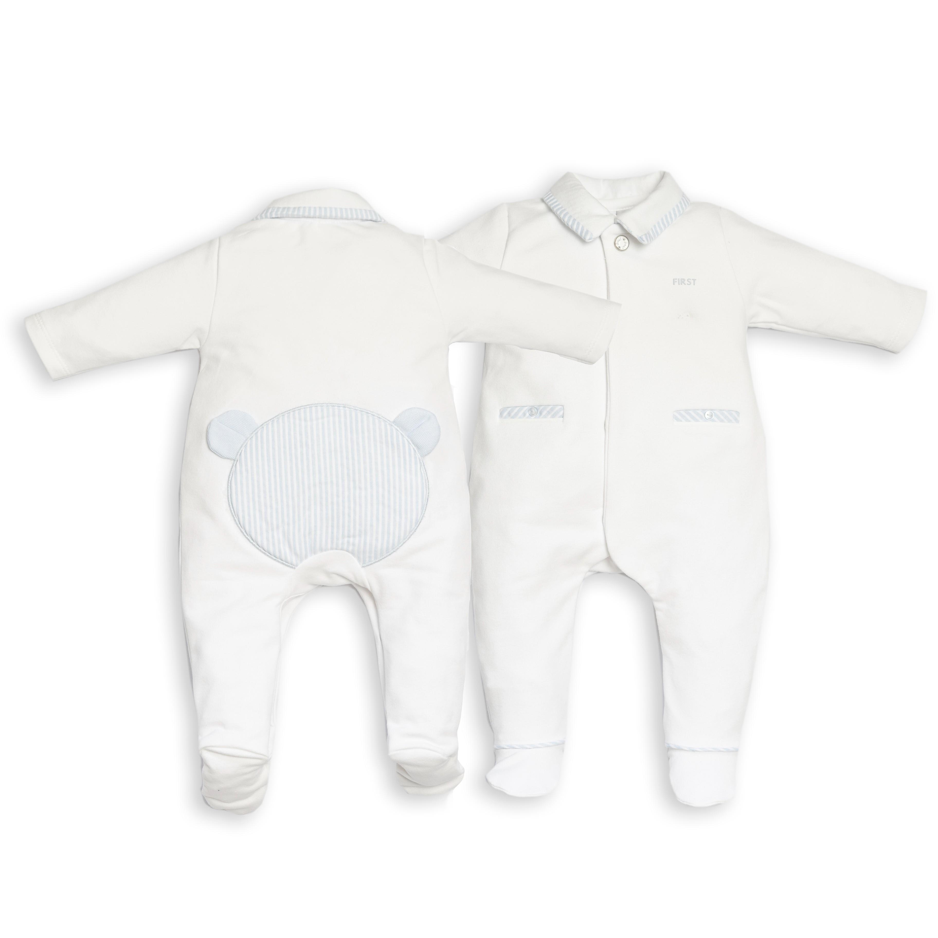 FirstWit combi lichtblauw gestreepte teddy aan de achterkant