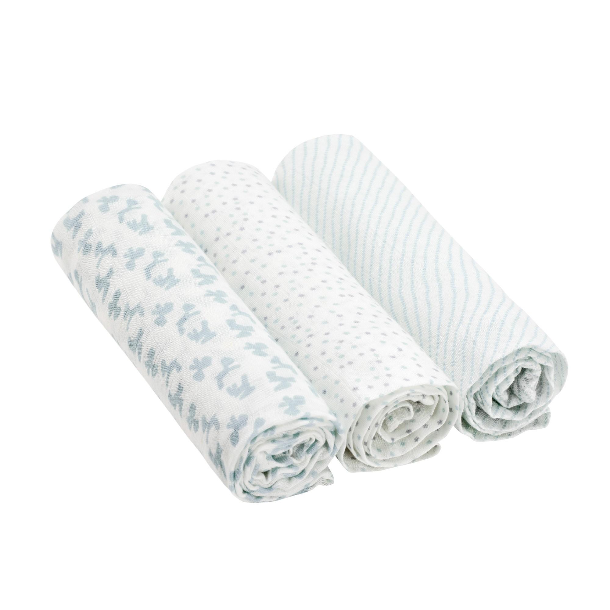 LässigHeavenly Soft Swaddle L Lela Light Blue 3 Pcs Ass., 80 X 80 Cm blauw grijs