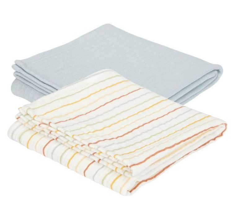 Little DutchSwaddle doeken 70 x 70 Vintage Sunny Stripes/Pure Soft Blue