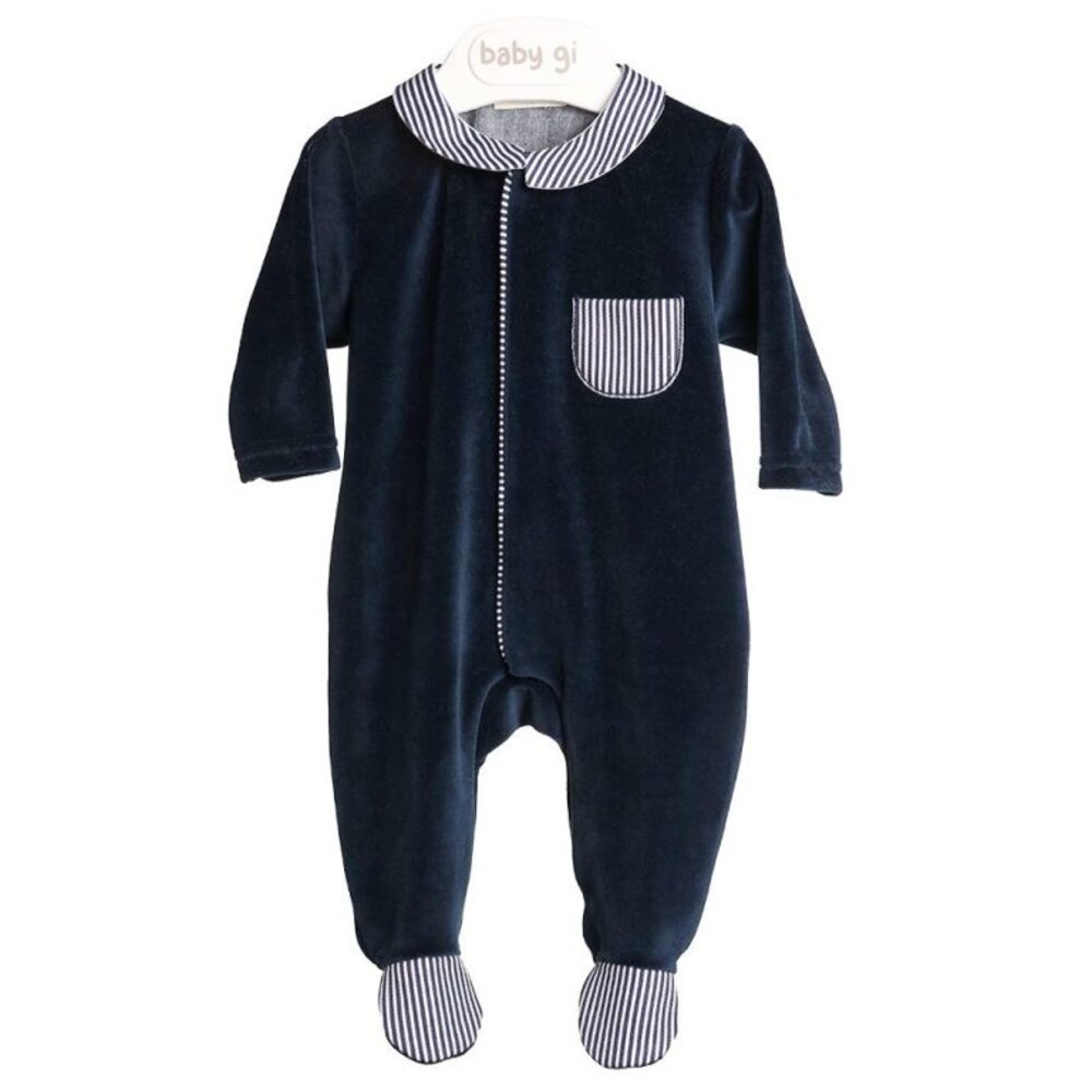 Baby GiBabypakje velours met zakje en piqué kraag Navy
