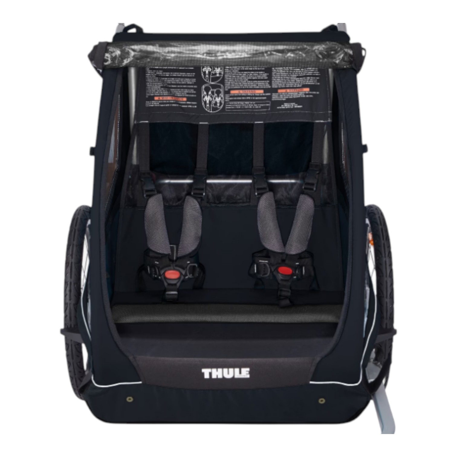 Binnenin is er comfortabele zitruimte voor twee kinderen, met een 5-puntsgordel voor maximale veiligheid. Dankzij de extra bergruimte neem je makkelijk alles mee wat je nodig hebt voor onderweg. De trailer is compatibel met diverse accessoires en voldoet aan alle internationale veiligheidsnormen.