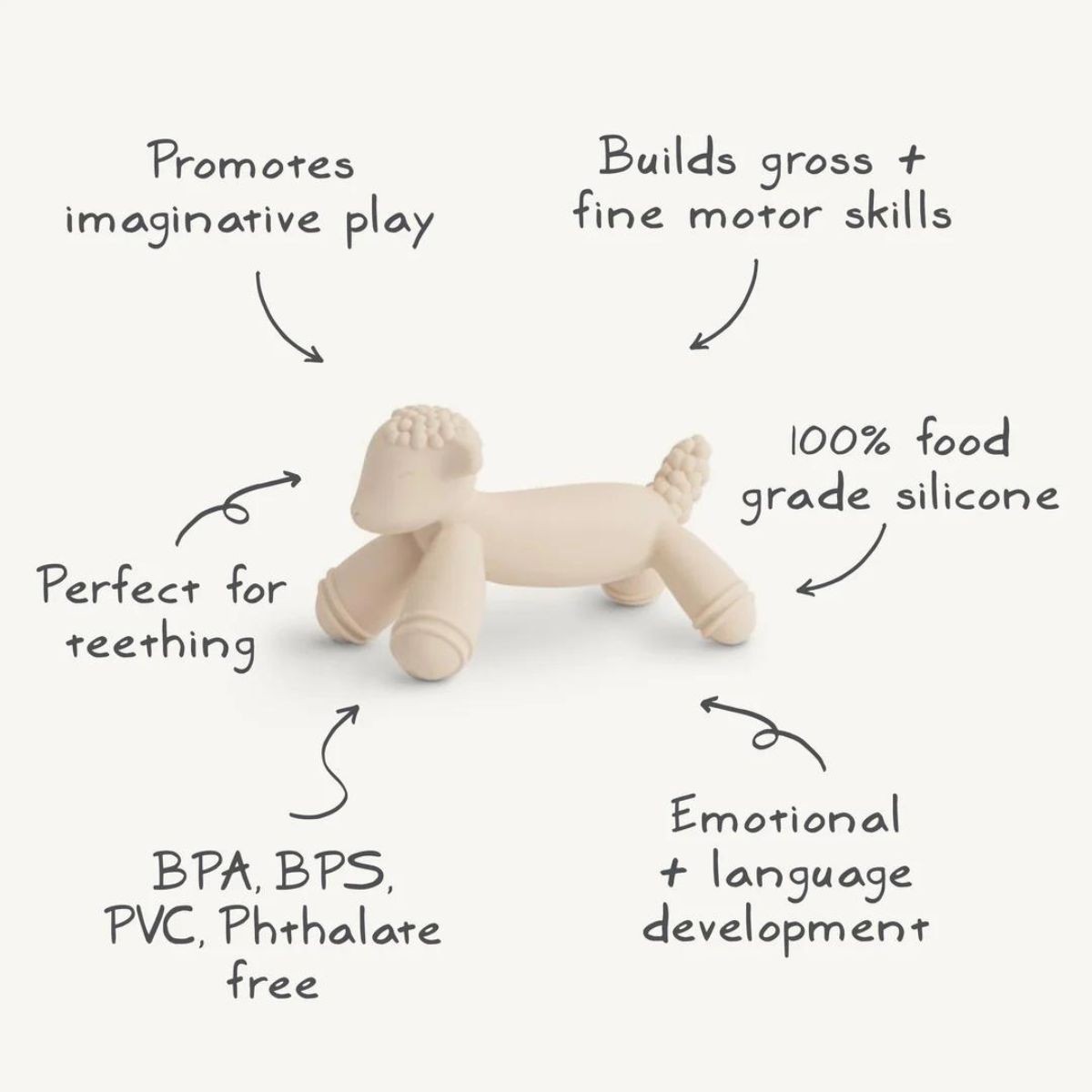 Deze Figurine Teethers zijn gemaakt van voedselveilige silicone en zijn zacht voor het gevoelige tandvlees van je baby.
