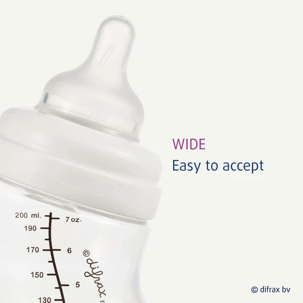 De flessenspeen is gemaakt van zacht, veilig BPA-vrij siliconen en ontwikkeld door het Difrax medisch team. Verpakt per 2 stuks.