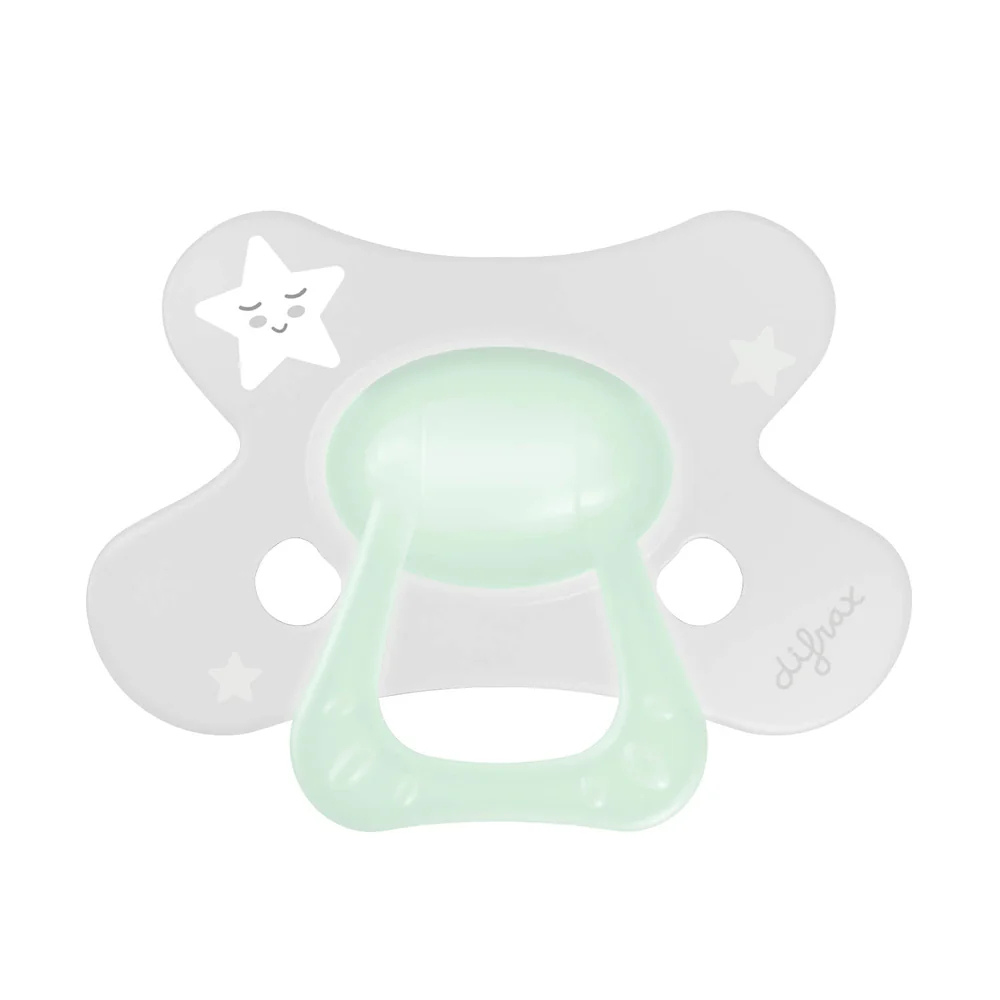 De Difrax Glow in the Dark Fopspeen Dental 12+ maanden is ideaal voor baby's die toe zijn aan de volgende stap. Dankzij de lichtgevende ring vind je de speen gemakkelijk terug in het donker – wel zo handig 's nachts ??.