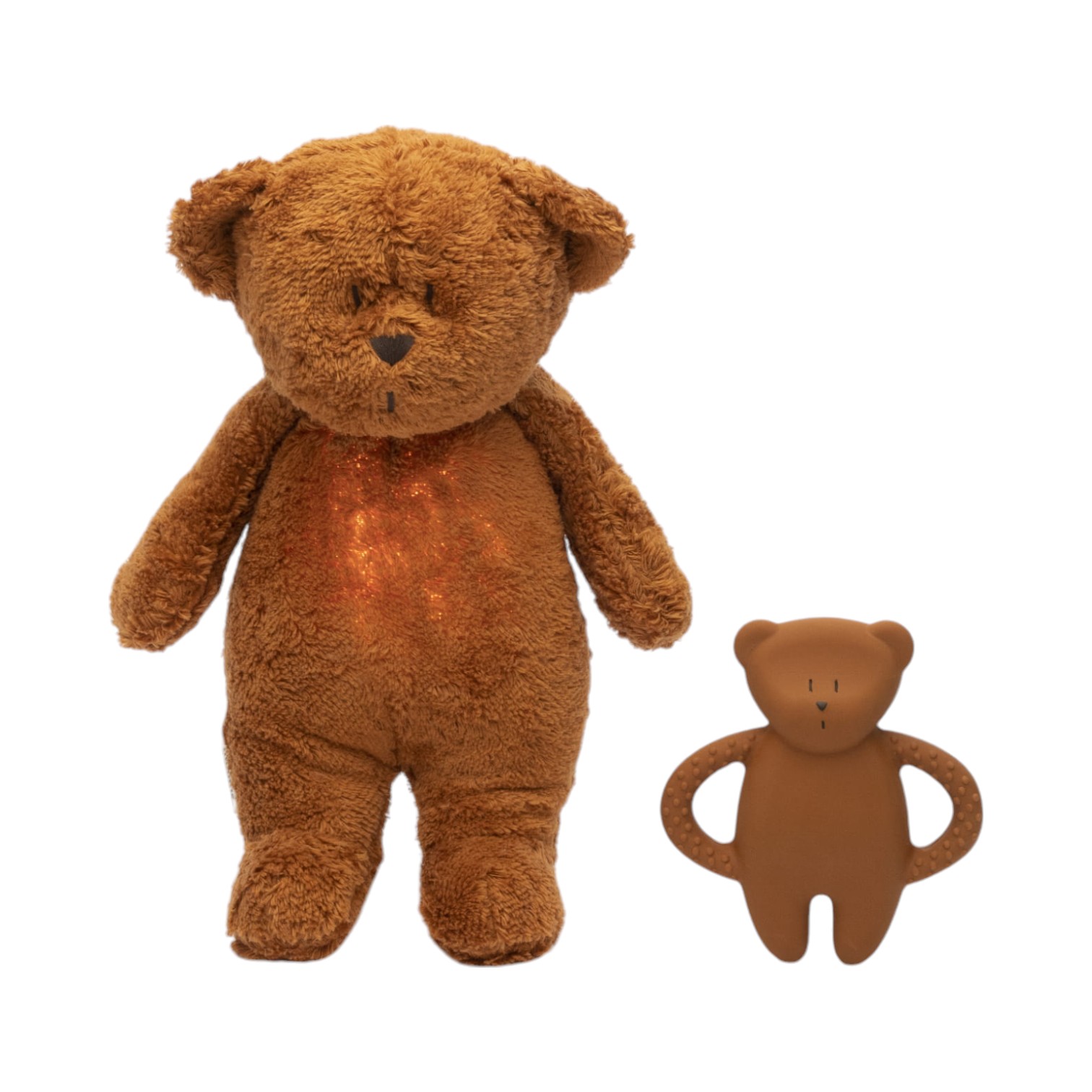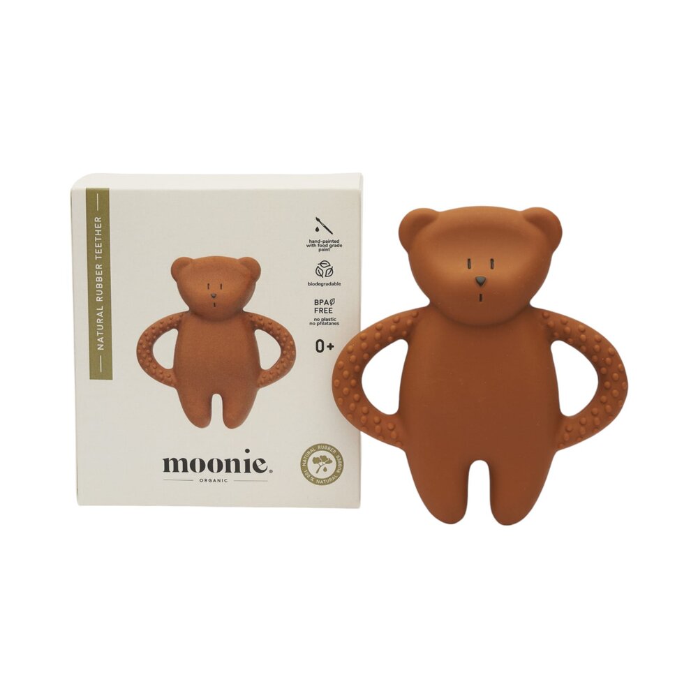 De Moonie Bijtring Beer is een schattige en veilige bijtring, perfect voor baby's die tandjes krijgen. Gemaakt van 100% natuurlijk materiaal, helpt deze bijtring pijn te verzachten en stimuleert het tandvlees op een comfortabele manier. De zachte textuur en het leuke beervormige ontwerp maken het aantrekkelijk voor kleintjes. Daarnaast is de bijtring makkelijk vast te houden voor kleine handjes. Veilig, duurzaam en milieuvriendelijk, de Moonie Bijtring Beer is een ideale keuze voor elke ouder die op zoek is naar een praktische en stijlvolle oplossing tijdens de tandjesfase.