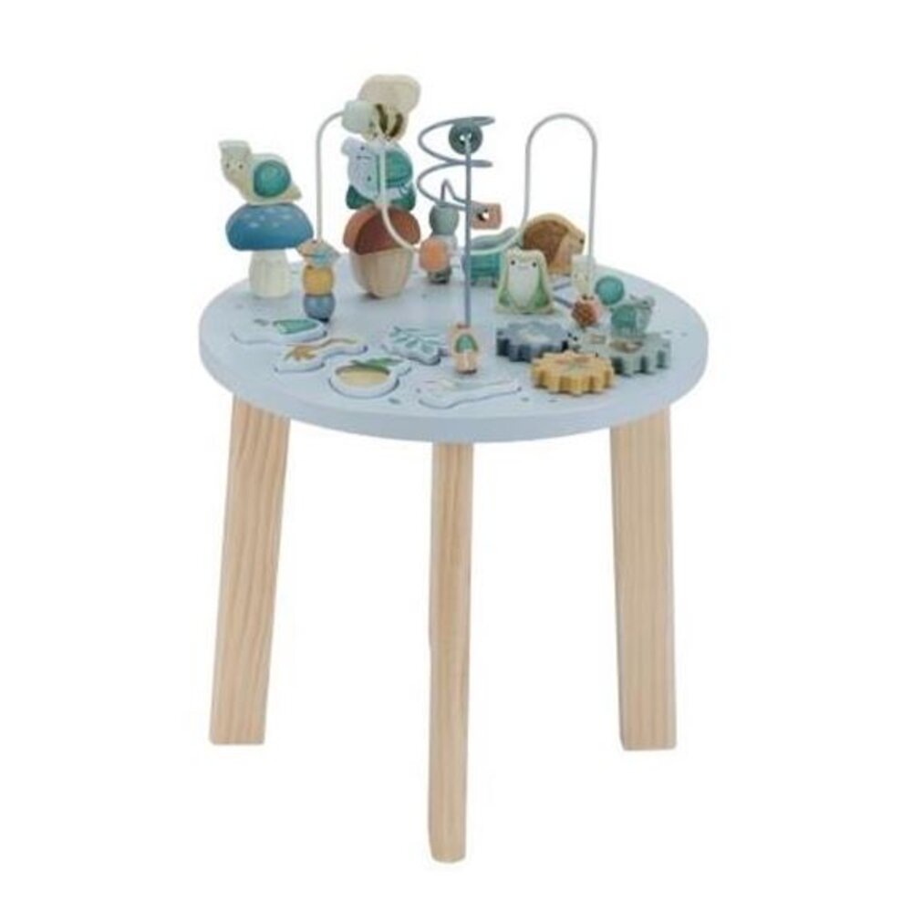 Sta op en speel! Ontdek alle activiteiten die deze tafel te bieden heeft. Breng de kralen van de ene naar de andere kant van de spiraal dwars door het betoverende bos. Of bouw een blokkentoren en vul het bos met leuke bomen. Maak de puzzel, draai aan de tandwielen en beweeg de diertjes door de Forest Friends-omgeving. Deze houten activiteitentafel daagt je kleintje op vele manieren uit. Er zijn 5 activiteiten om te ontdekken, die elk de ontwikkeling van fijne motoriek ondersteunen. Dankzij het veilige en uitgebalanceerde ontwerp stimuleert de activiteitentafel ook het opstaan. Én het blijven staan! Want al die speelfuncties zullen je peuter een tijdje bezig houden. Te monteren door een volwassene.