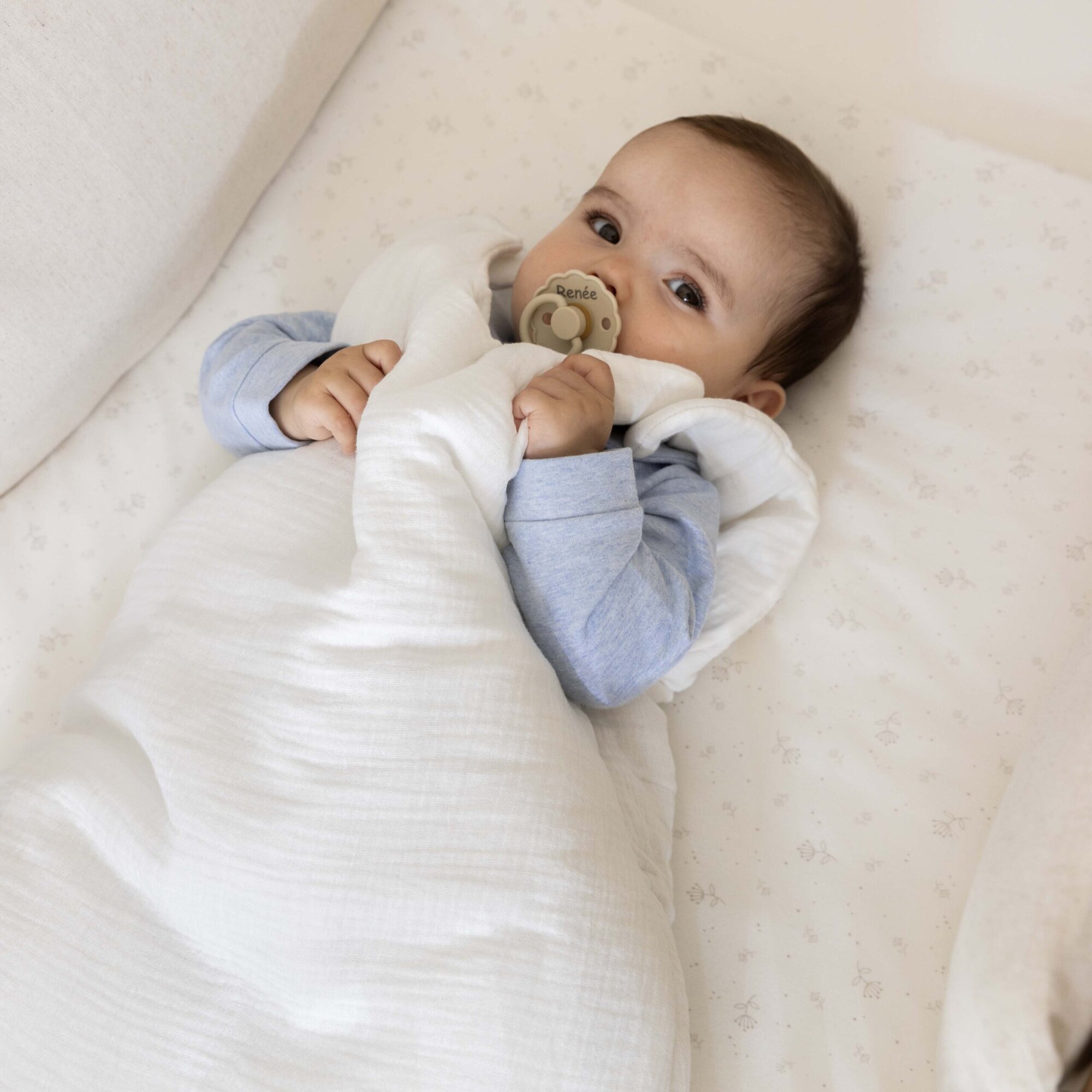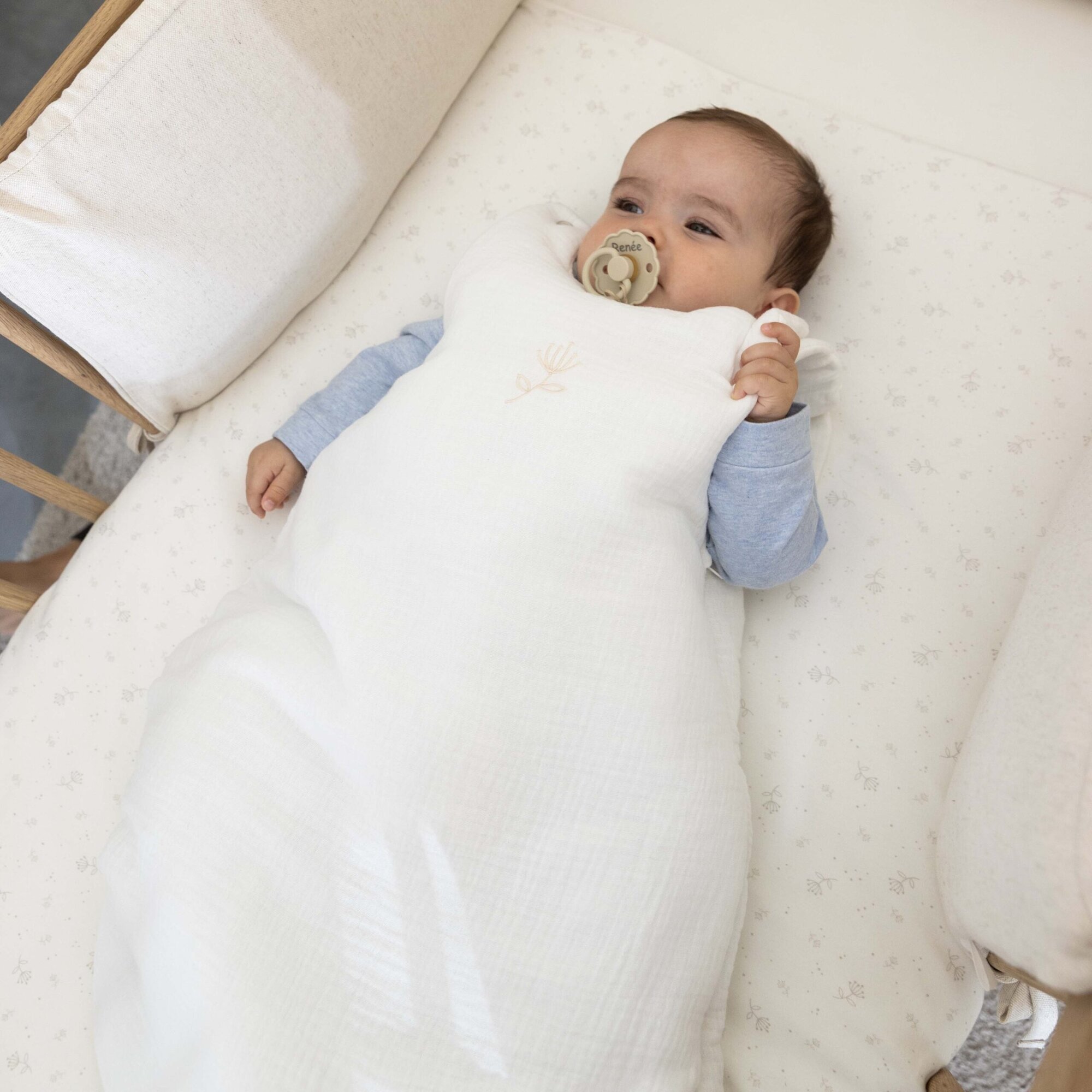 Living NatureSlaapzak tetra winter 70 cm + borduur bloem+ nacré drukknopen Wit