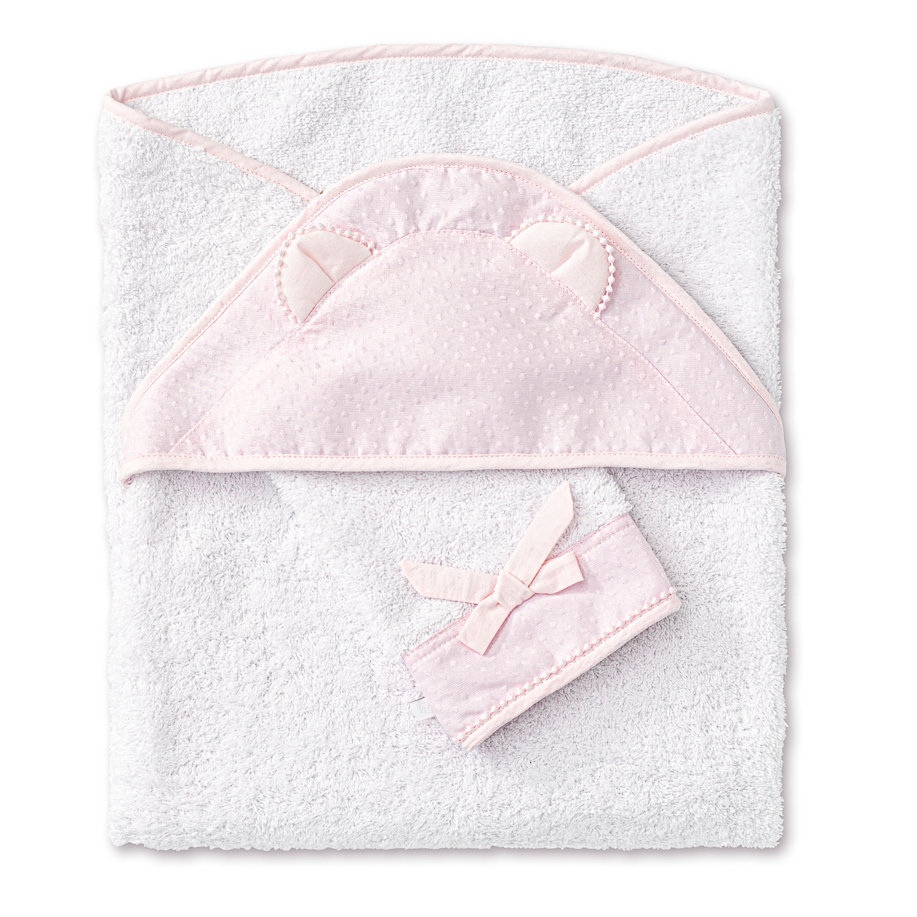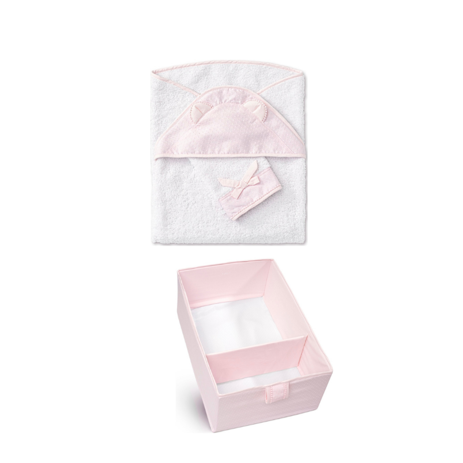 FirstVerzorgingspakket Pretty Pink - Badcape met washandje Arne + Opbergmand Dion