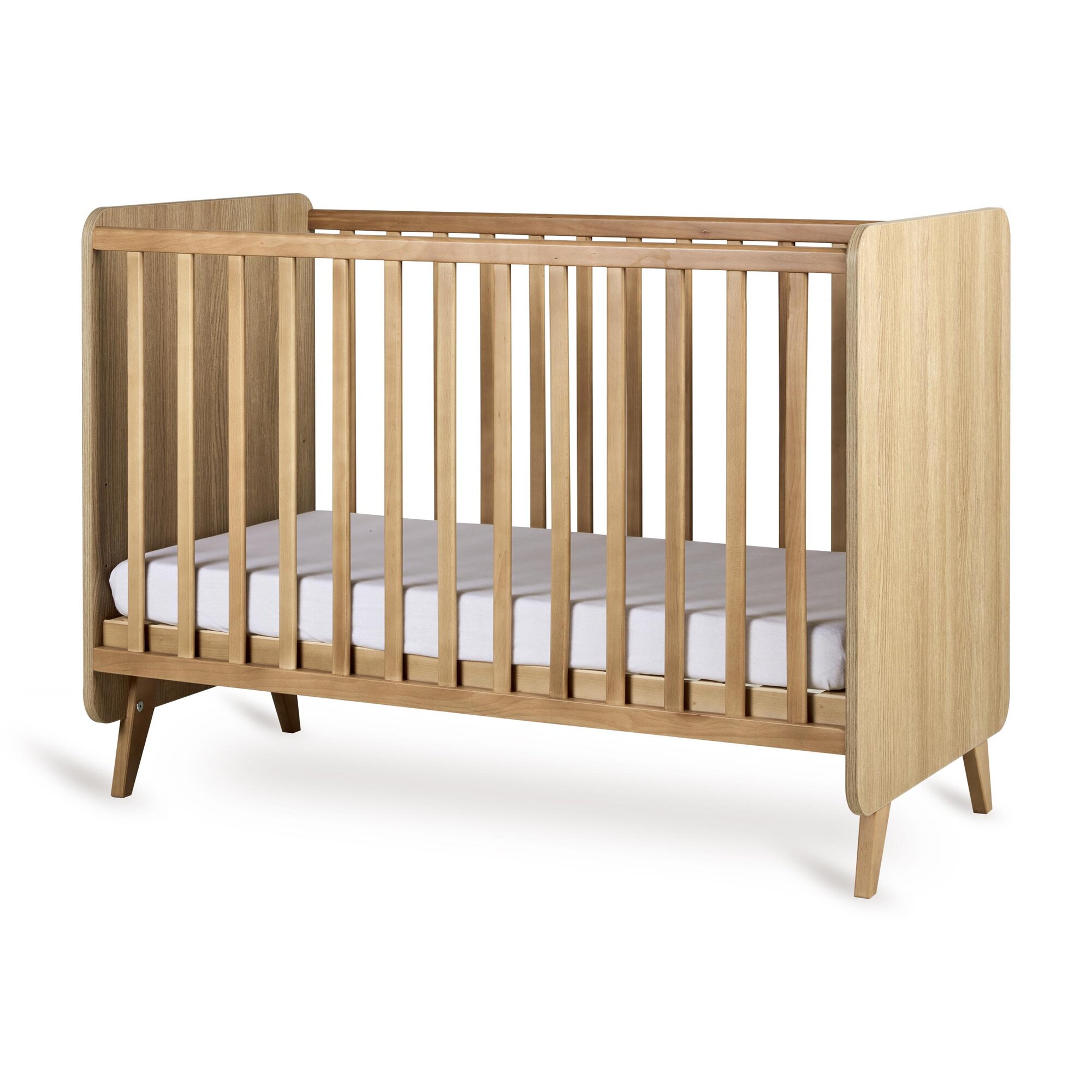Dit bedje beschikt over drie verstelbare bodemhoogtes (29 cm, 44 cm en 59 cm), waardoor het eenvoudig aan te passen is aan de behoeften van je groeiende baby. Ondersteund door vier stevige pootjes van massief beukenhout, straalt het bedje stabiliteit en duurzaamheid uit, terwijl de zijpanelen van gemelamineerde spaanderplaat en massief beukenhout met spijlers een tijdloze elegantie toevoegen aan de kinderkamer.