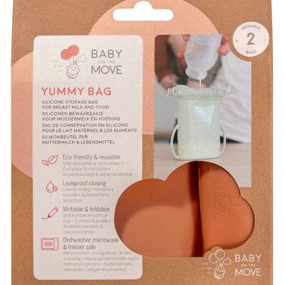 De Baby on the Move Yummy Bag is ideaal voor het bewaren van moedermelk, babypuree en snacks. Gemaakt van 100% food grade siliconen, biedt deze herbruikbare zak een milieuvriendelijke en veilige oplossing voor onderweg. Het slimme, lekvrije ontwerp zorgt ervoor dat voeding vers blijft en eenvoudig mee te nemen is.