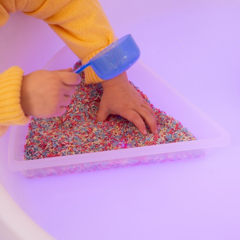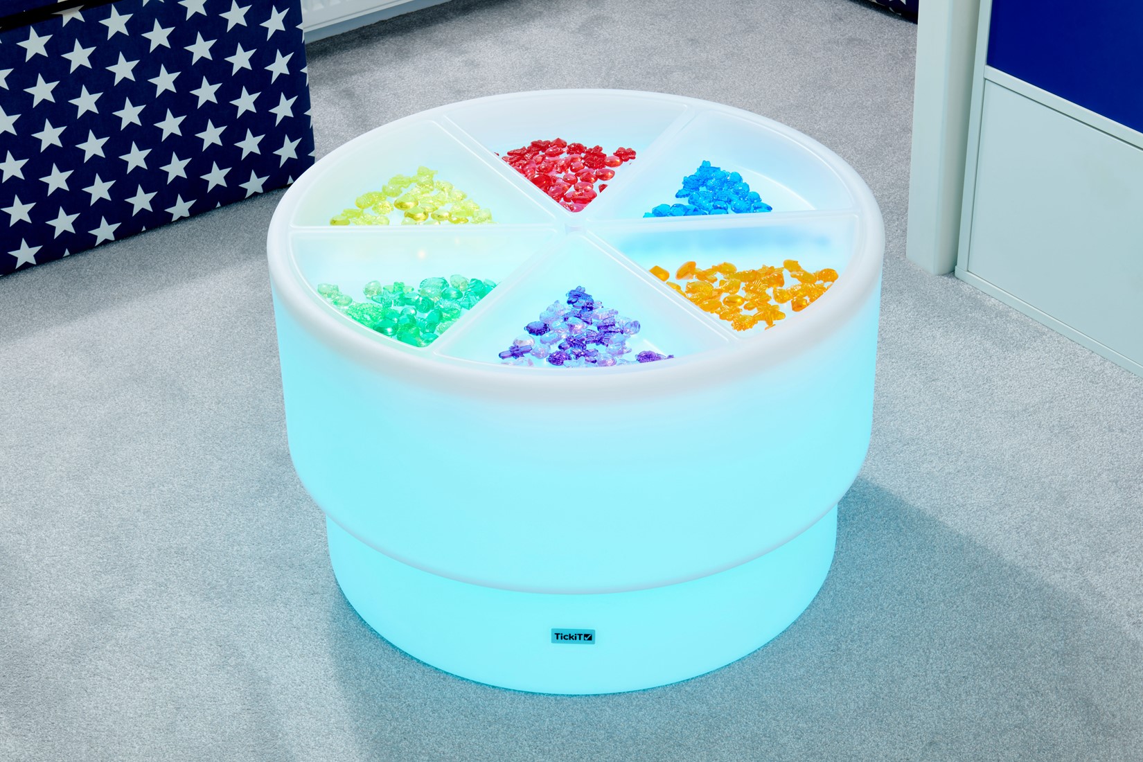 De Tickit Discovery Trays nodigen kinderen uit om spelenderwijs verschillende materialen te ontdekken, zoals zand, confetti, water en houtsnippers. Gemaakt van stevig polypropyleen, zijn ze eenvoudig te tillen, legen en reinigen, perfect voor zowel individueel als groepsspel. Combineer met de Sensory Mood Discovery Tables voor een verrijkende zintuiglijke ervaring.