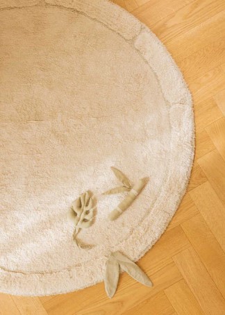 De Bamboo Leaf rug is een extra zachte, ronde speelmat met een iets hogere pool die een natuurlijke bamboe-rand suggereert. De afneembare sensorische bamboeblaadjes—gemaakt van GOTS-gecertificeerd katoen en gevuld met knisperpapier—stimuleren de zintuigen van de baby tijdens het spelen.