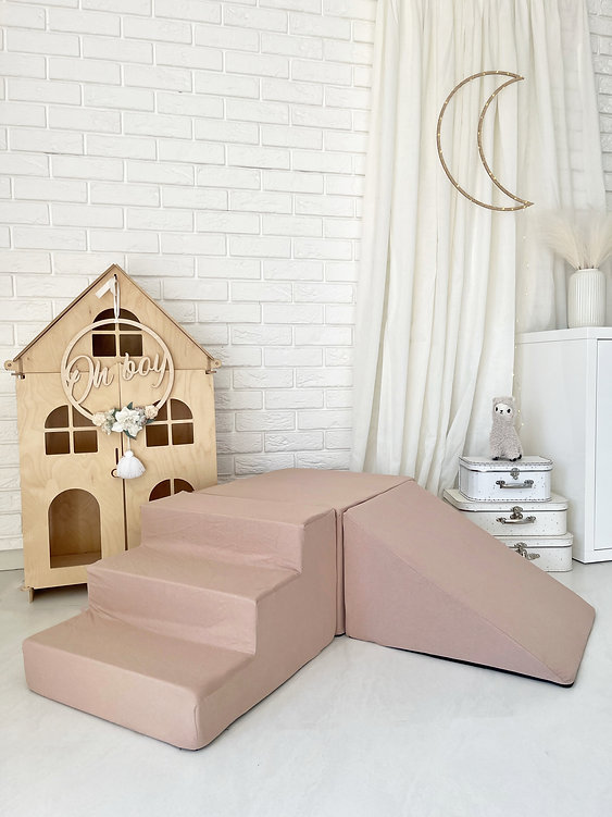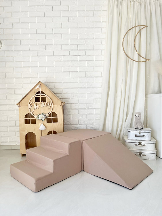 De MOJE Cotton 3 Elements-set is een stijlvolle en praktische speelset die perfect werkt als uitbreiding op een ballenbad of als zelfstandig speelparcours. De drie zachte schuimelementen – een trapje, driehoek en blok – nodigen kinderen uit om te klimmen, bouwen, springen en creatief te spelen. De hoes van 95% katoen (Oeko-Tex 100) voelt zacht aan, is veilig voor gevoelige huidjes en eenvoudig wasbaar dankzij de afneembare rits. Het minimalistische design en de zachte kleuren passen moeiteloos in elke kinderkamer of woonkamer. Gemaakt in de EU en ideaal voor motorische ontwikkeling én uren speelplezier.
