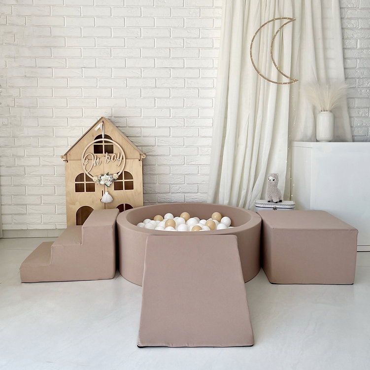 MojeFoam speelset katoen (3st) + ballenbad 90x30 + 200 ballen Beige