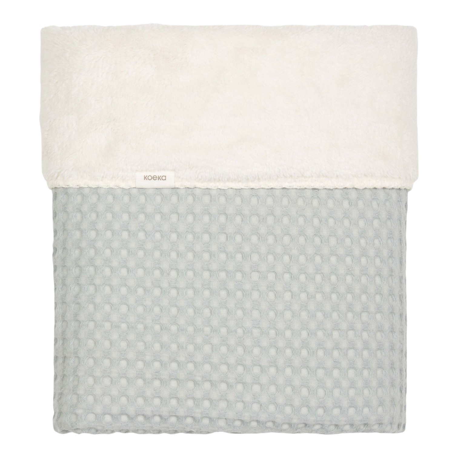 De Koeka ledikantdeken Oslo is een warme en stijlvolle deken van katoen met wafelstructuur en een zachte teddy voering. Perfect voor het ledikant, maar ook later handig in een eenpersoonsbed of onderweg.