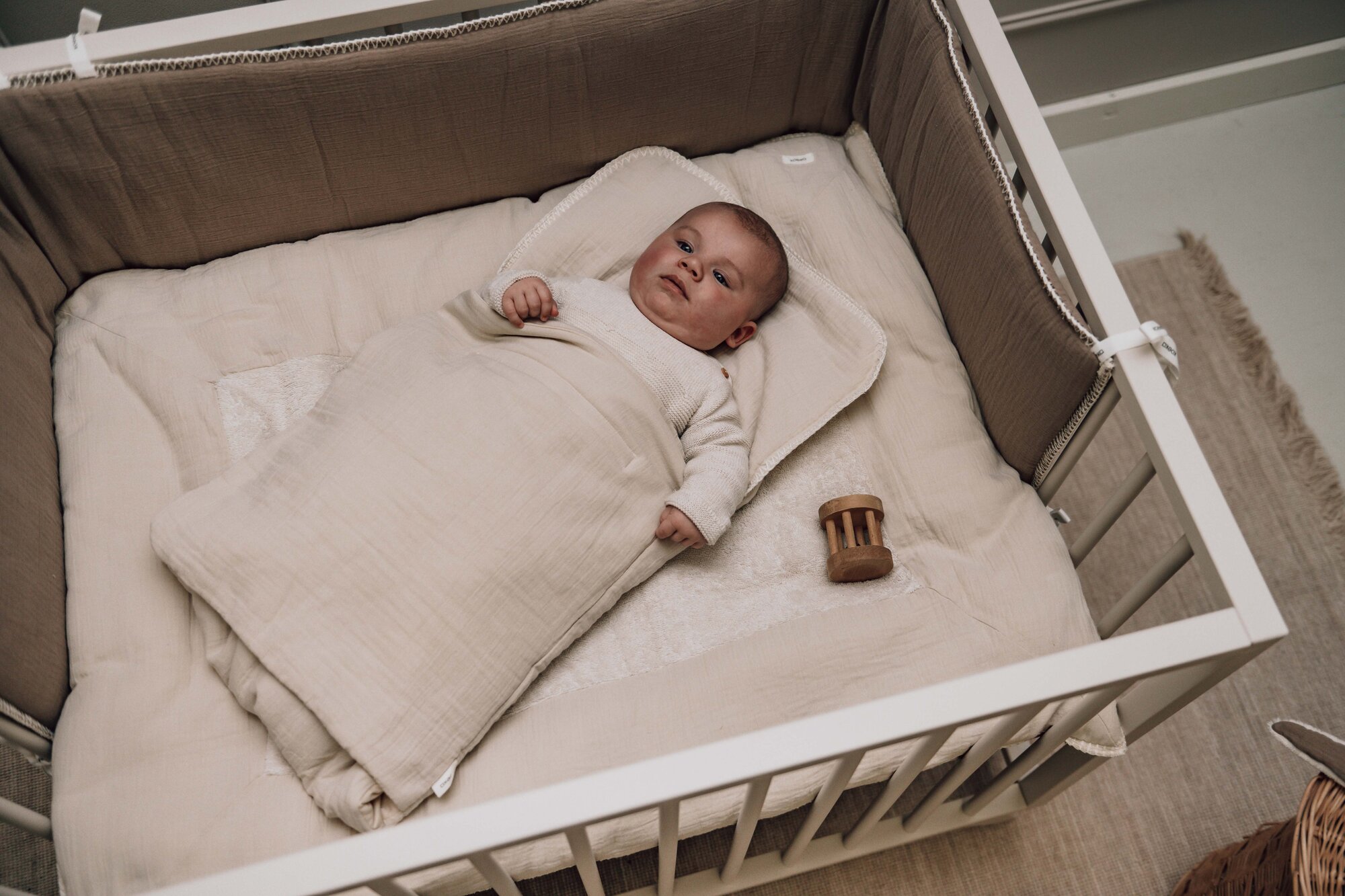 Met zijn natuurlijke uitstraling en tijdloze design past deze wikkeldeken perfect in iedere babyuitzet.