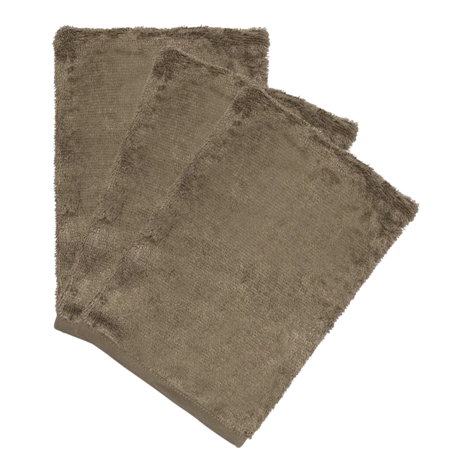 De washandjes worden geleverd in een handige set van 3 stuks en combineren comfort met duurzaamheid.