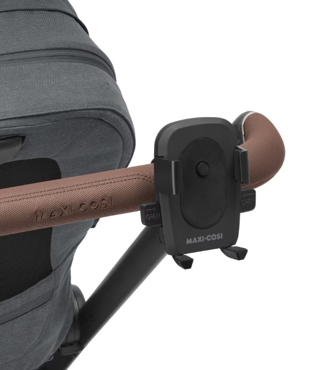Houd je handen vrij! De Maxi-Cosi telefoonhouder is geschikt voor alle smartphones, zit stevig vast aan je kinderwagen en kan 180° draaien. Zet je kinderwagen in de juiste stand en je telefoon is altijd onder handbereik om handsfree te navigeren, die perfecte afspeellijst te kiezen of je kleintje onderweg te vermaken.
