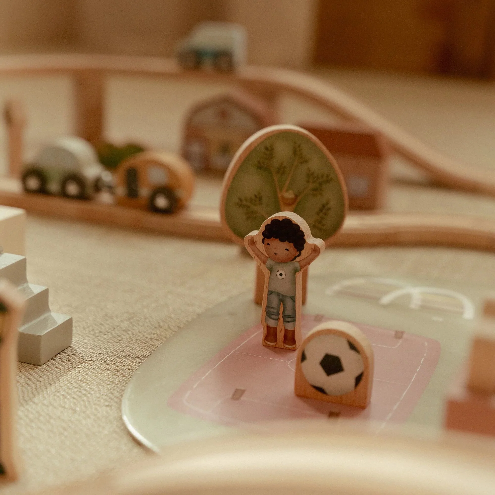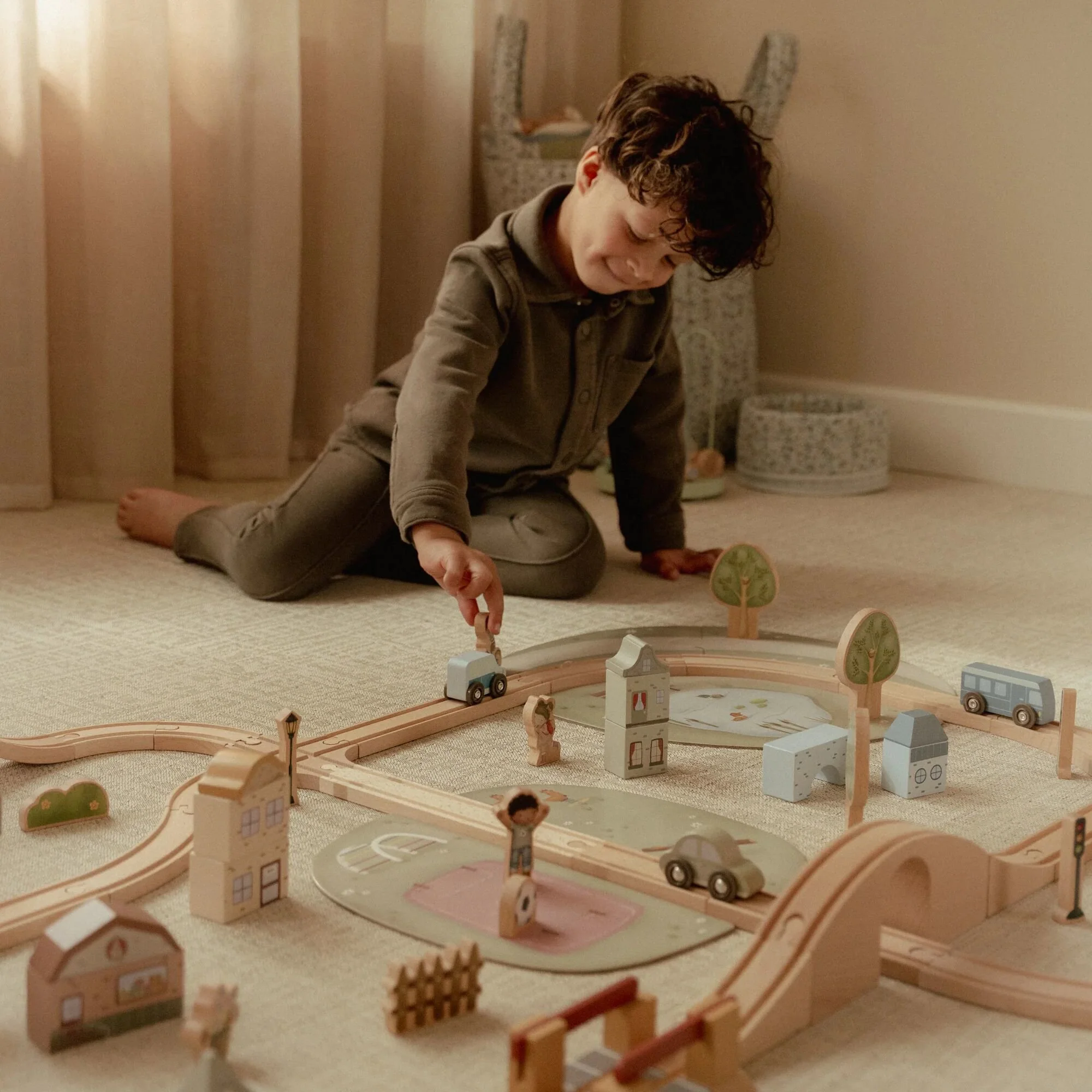 Ontdek eindeloos speelplezier met de Little Dutch houten treinbaan XL! Deze uitgebreide set bevat alles om een levendige wereld te bouwen: een locomotief met wagons, rails, bruggen, gebouwen, auto's, figuren, bomen en verkeersborden. Laat de trein over de brug rijden, stop bij het station en verken de stad. Gemaakt van duurzaam hout en perfect te combineren met uitbreidingssets voor nóg meer avontuur. Stap in en laat de fantasie rijden!