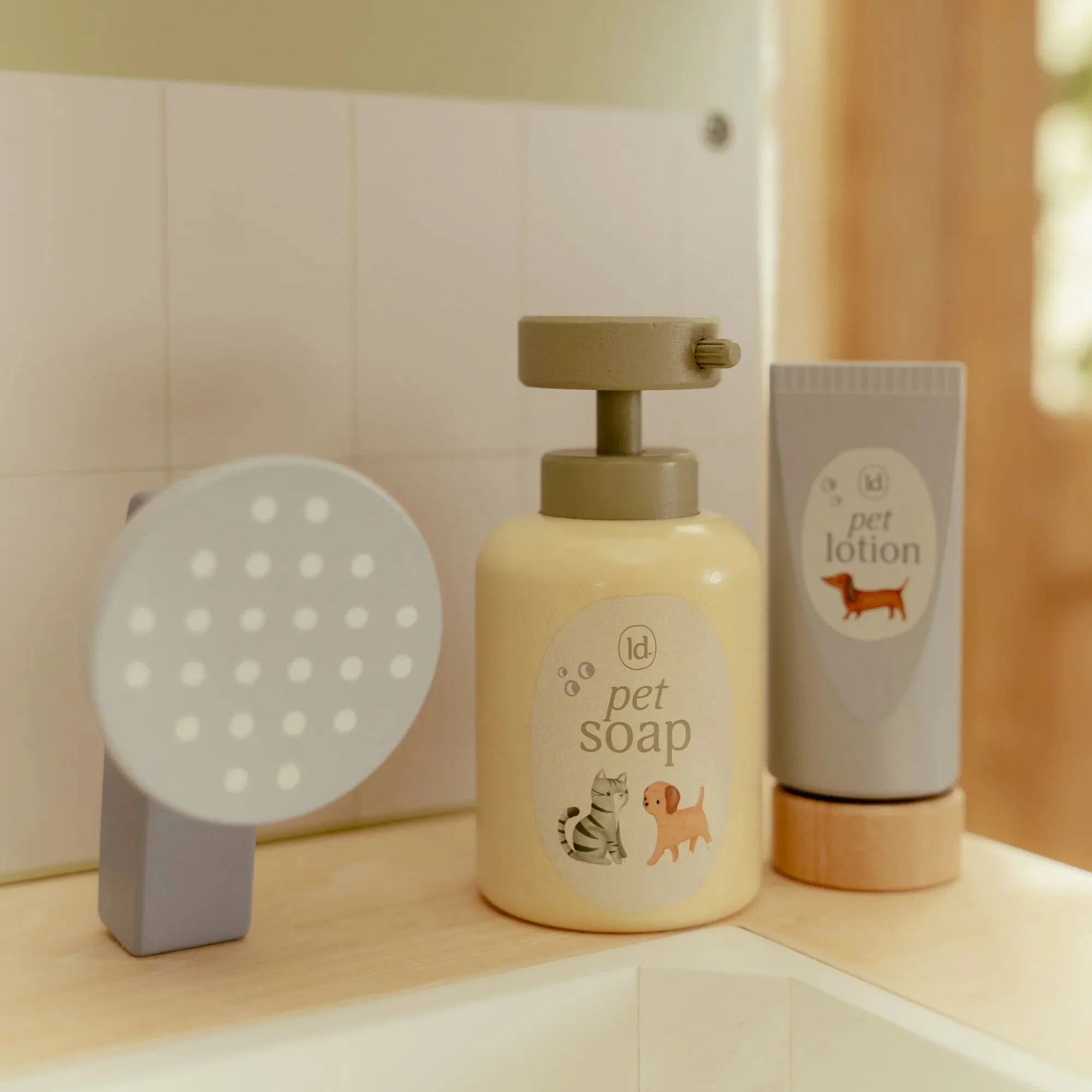 Zorg jij goed voor zieke knuffels en speelgoeddiertjes? Met deze uitgebreide houten dierenartspraktijk kan je kleintje zich helemaal inleven als echte dierenarts. De set bevat alles wat nodig is om huisdieren te verzorgen, zoals een uittrekbare douchekop met wasbak, een kam, thermometer, injectiespuit en pleisters. Ook inbegrepen zijn een stoffen hoofdband en een speciale clip om medische illustraties en röntgenfoto's op te hangen. Tijd voor de volgende patiënt!