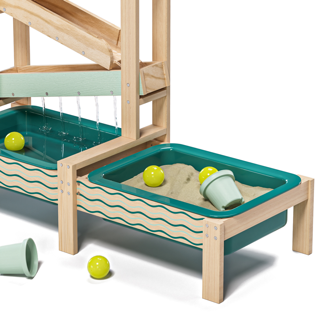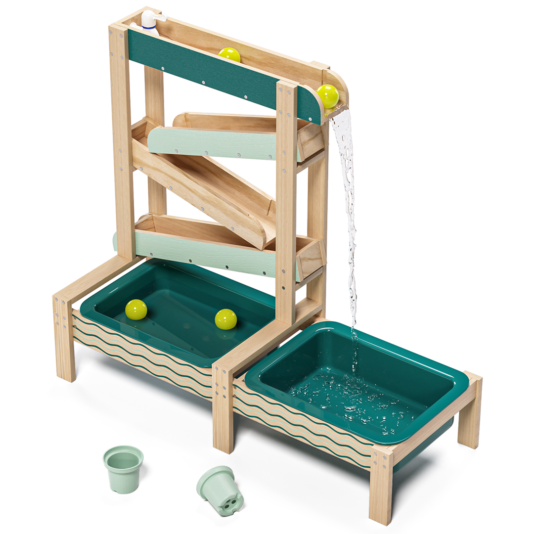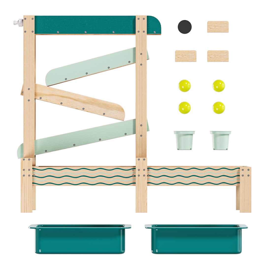 De Water Track is een houten buitenspeelset waarmee kinderen spelenderwijs water en zand ontdekken. Met meerdere waterbanen, verstelbare obstakels en twee grote speelbakken stimuleert dit spel experimenteren, oorzaak-en-gevolg en vroege STEM-vaardigheden. Perfect voor tuin, terras of balkon en ideaal voor actief en creatief buitenspelen.