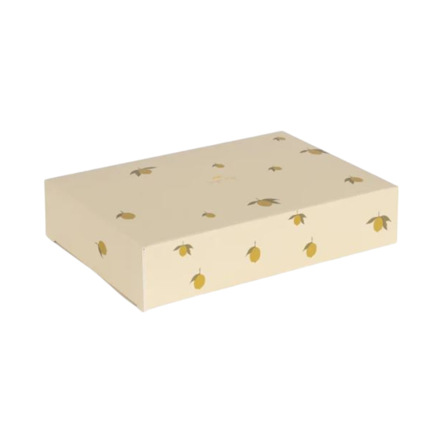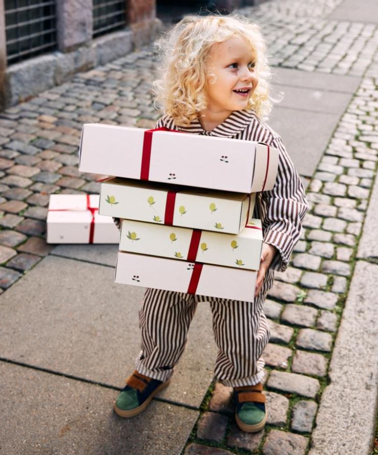 Stijlvolle geschenkverpakking van papier, versierd met de herkenbare Konges Sløjd handtekening. Ideaal om cadeaus mooi en duurzaam in te pakken.