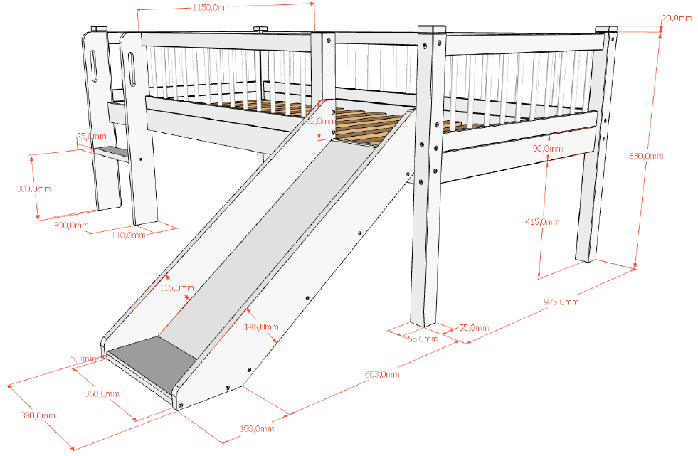 JaxxForrest halfhoogslaper met glijbaan 90 x 200 cm beuk Wit