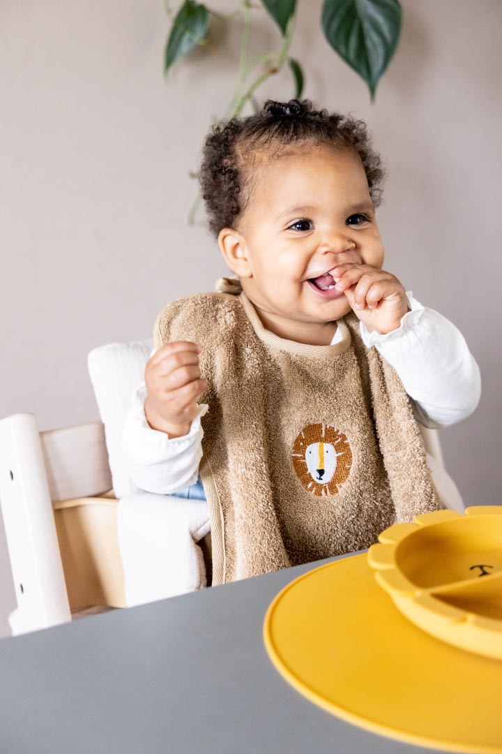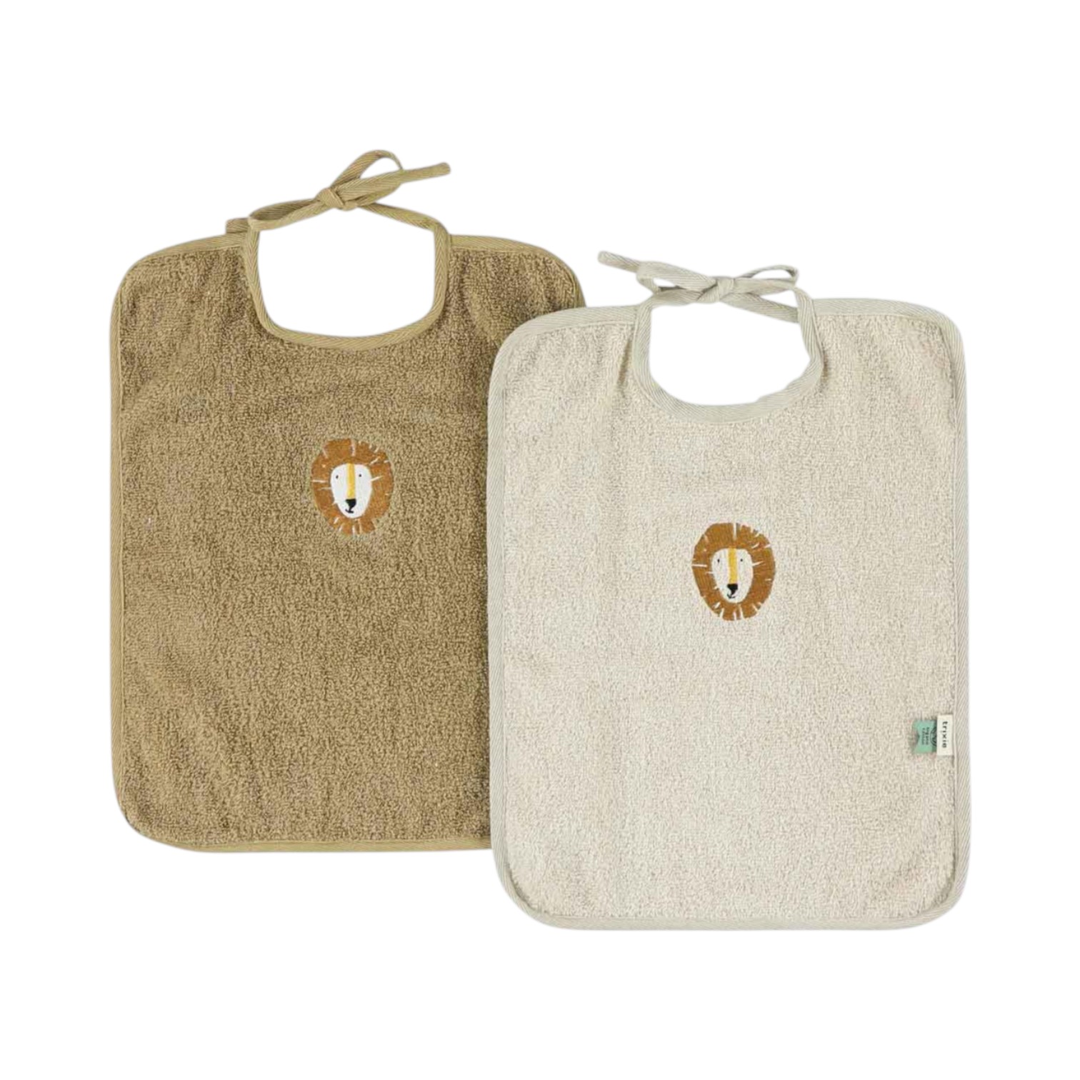 De slab XL is een grote, zachte slab vervaardigd uit biologisch katoen en absorbeert goed. Elke set bevat 2 slabben in een verschillende kleur. De slabben zijn voorzien van touwtjes om makkelijk rond de nek van je kleintje te binden voor een leuke maaltijd. Zo past de slab voor zowel baby's als kleuters.