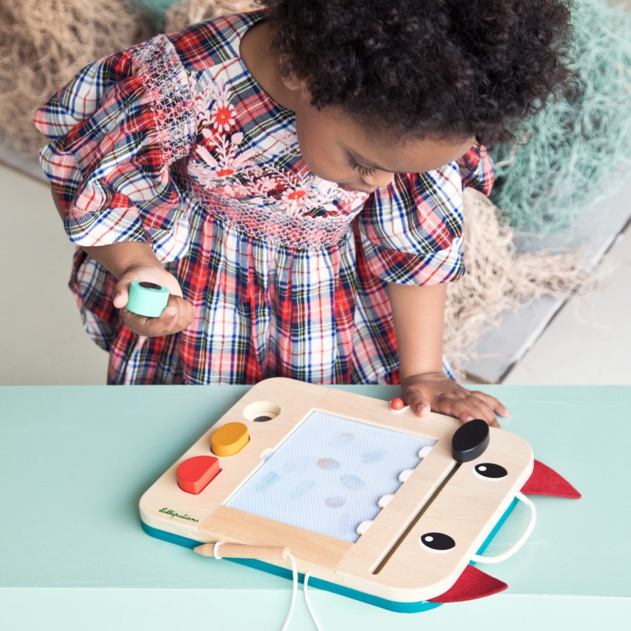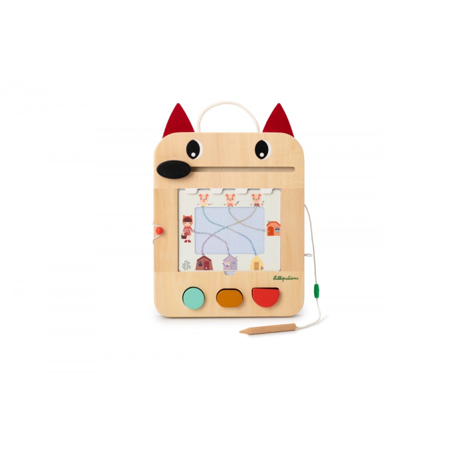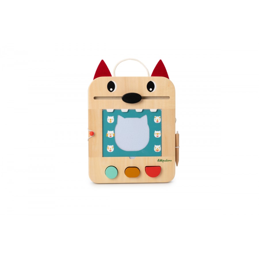 Laat kinderen eindeloos tekenen en spelen met het magische houten krijtbord Louis de Wolf van Lilliputiens. Dit unieke en originele krijtbord bevat 6 dubbelzijdige kaarten (12 spelletjes), handige vormen en een vastgemaakt houten potlood dat niet kwijtraakt. Door simpelweg de neus van de wolf te verschuiven, wordt alles weer uitgeveegd en verschijnen verrassende kleuren. Ideaal voor thuis én onderweg dankzij het handvat en de opbergruimte. Stimuleert fijne motoriek, fantasie en denkvermogen. Perfect cadeau voor nieuwsgierige peuters!
