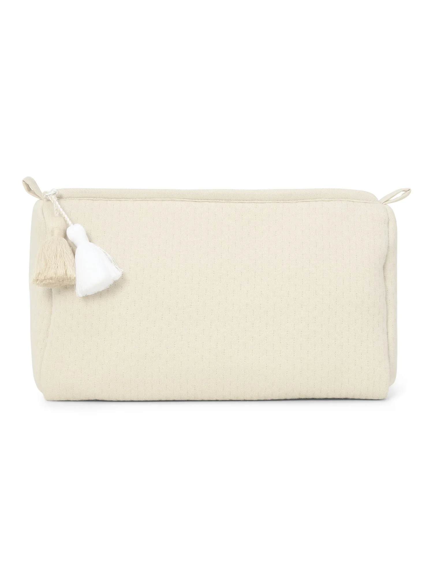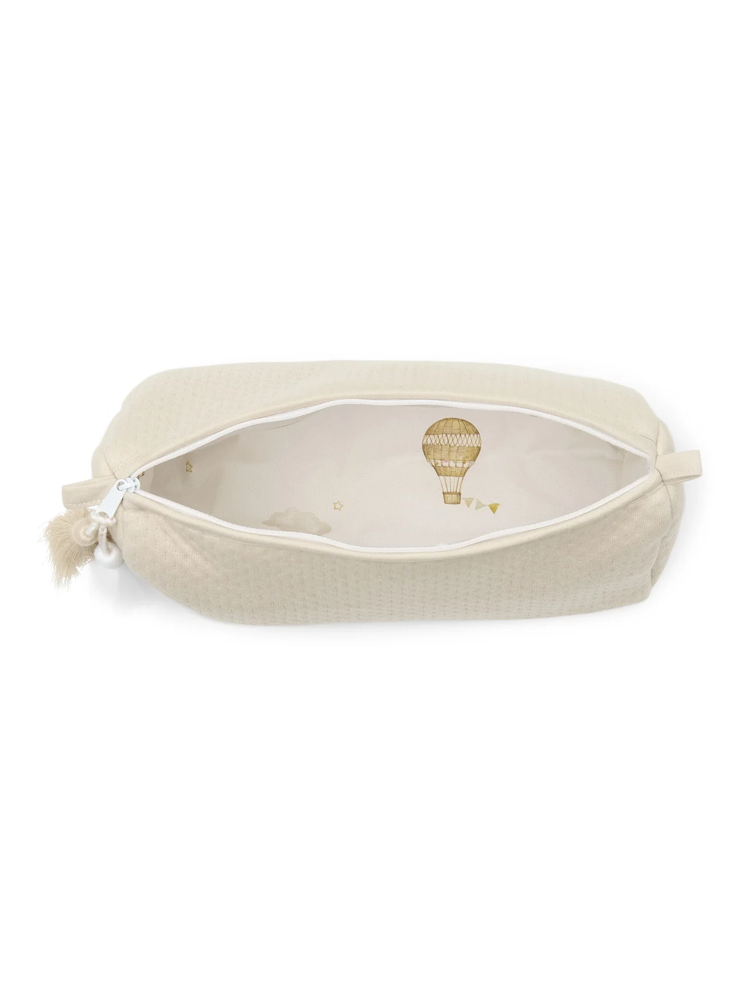 In deze handige toilettas kunnen luiers, een pakje billen doekjes en billen zalf opgeborgen worden. Ideaal voor onderweg maar ook leuk als accessoire voor op de commode.