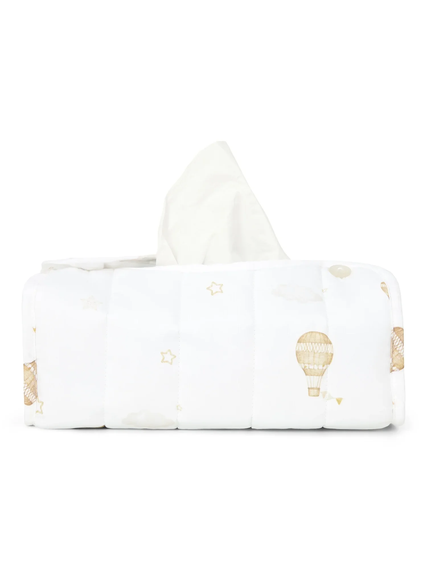 Geef je babykamer een stijlvolle touch met deze hoes voor je tissuebox. De Little Voyager-print voegt een elegant detail toe en combineert functionaliteit met een verfijnde uitstraling.