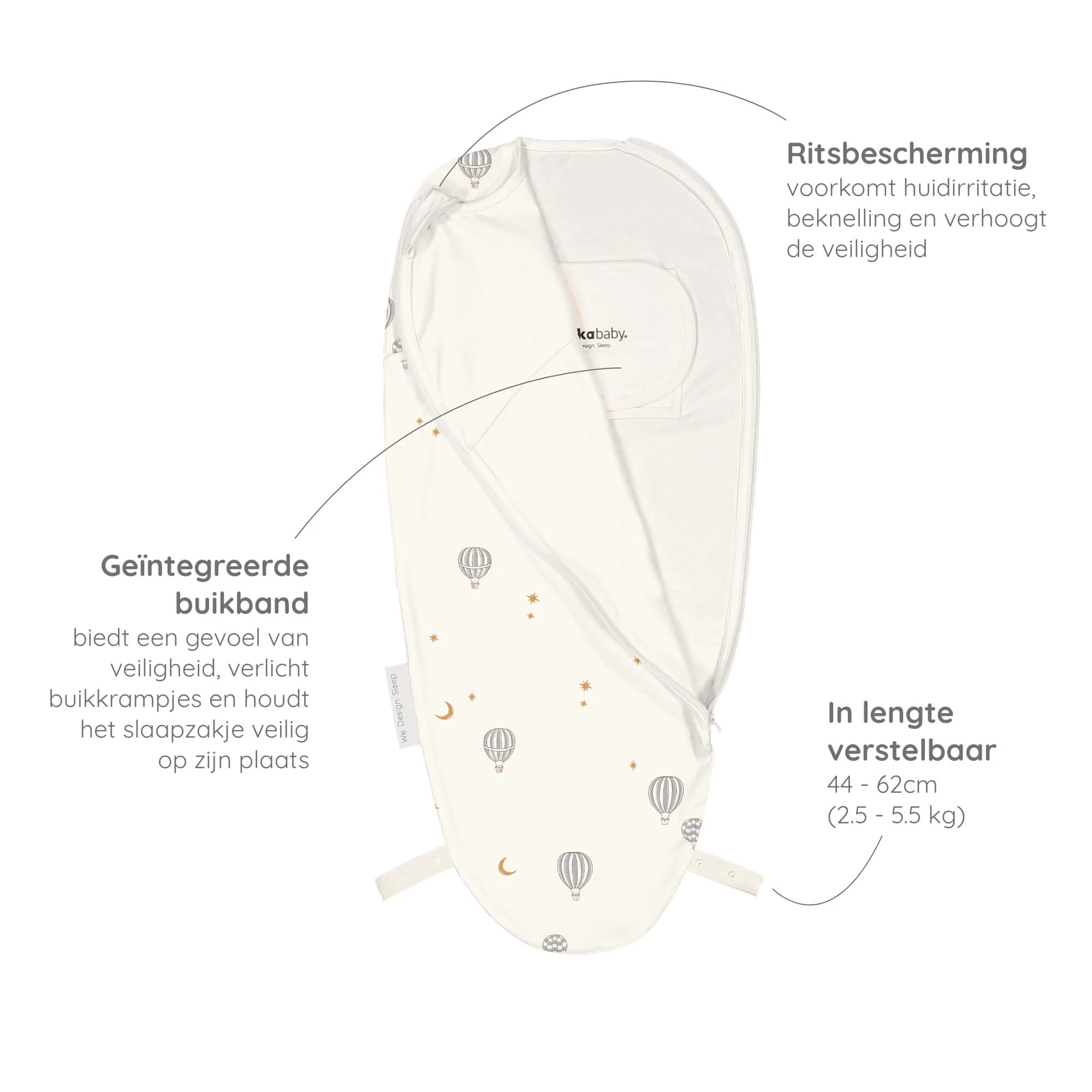 - Mild alternatief voor strak inbakeren veilig te gebruiken vanaf de geboorte dankzij de zachte begrenzing