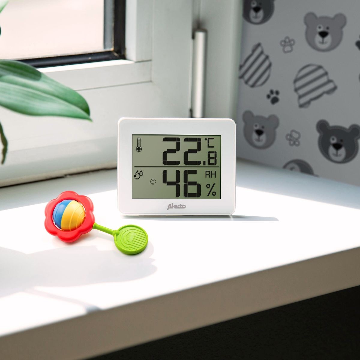 De Alecto WS-55 helpt je eenvoudig een gezond binnenklimaat te creëren voor je kindje en jezelf. Metingen van temperatuur en luchtvochtigheid geven je direct inzicht in de luchtkwaliteit, zodat je optimaal kunt ventileren of bijsturen. Het strakke, minimalistische design past in elk interieur en het display toont duidelijk de actuele waarden.