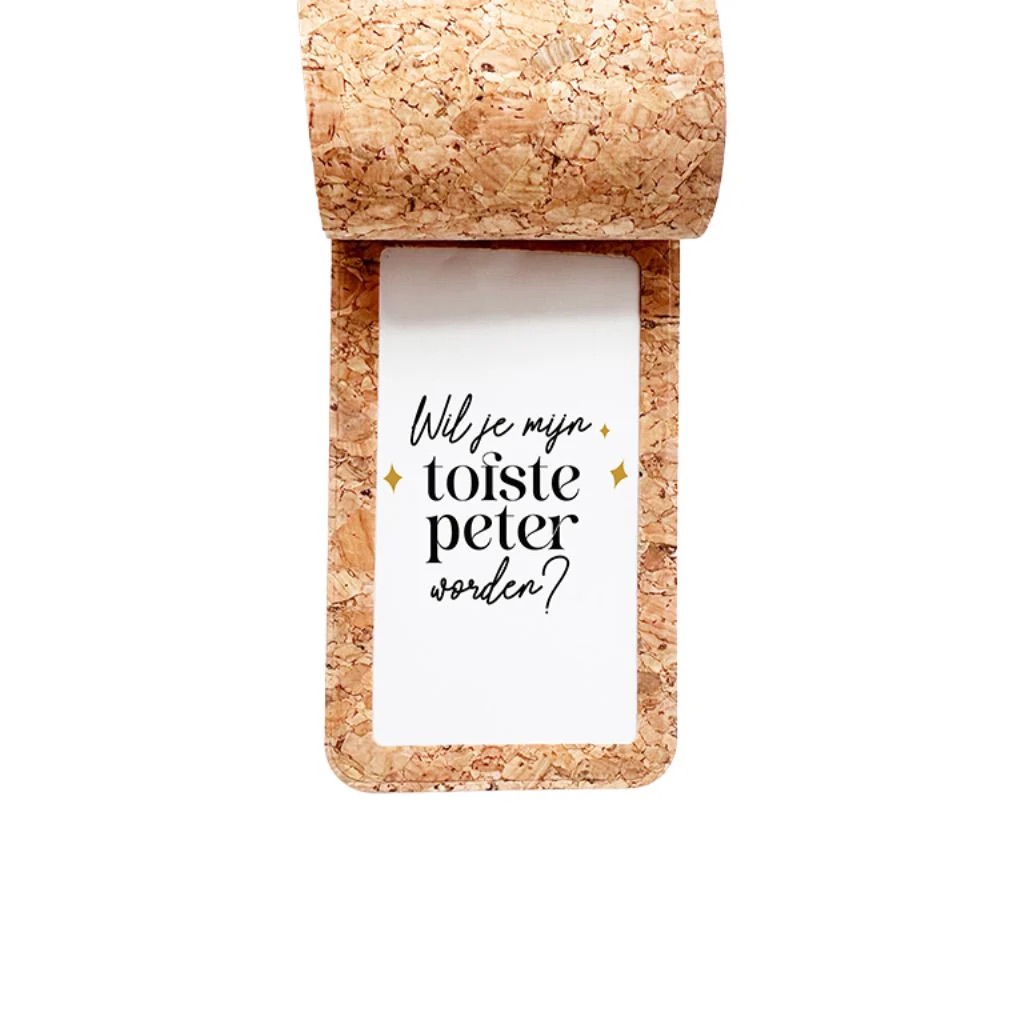 MinimouFleshanger in kurk - Klein gelukje - Wil jij mijn tofste peter worden?