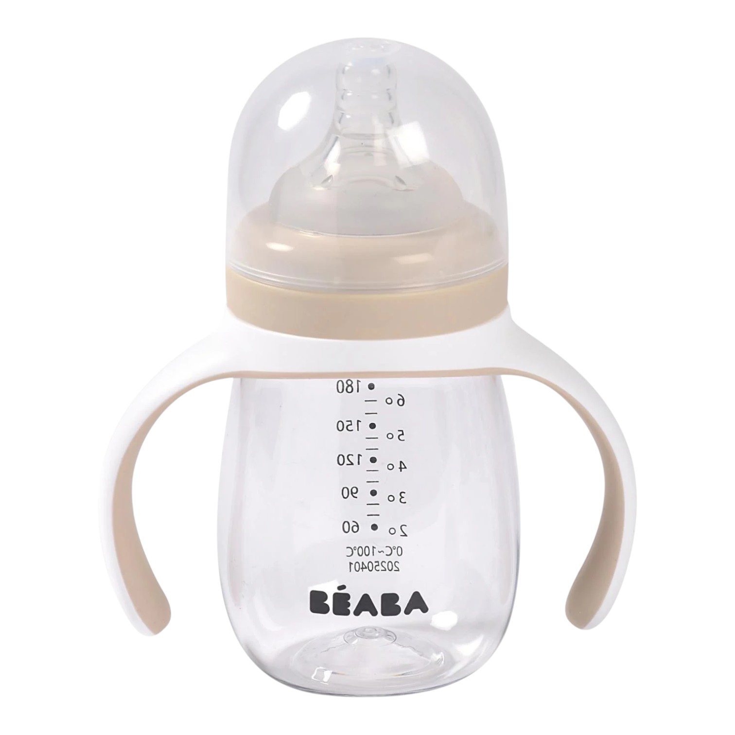 De BÉABA 210 ml drinkfles helpt kinderen vanaf 4 maanden om zelfstandig te leren drinken. Dankzij het 2-in-1 ontwerp met speen en zachte siliconen tip wordt de overgang van fles naar beker eenvoudig. De afneembare handgrepen maken het drinken extra makkelijk voor kleine handjes.